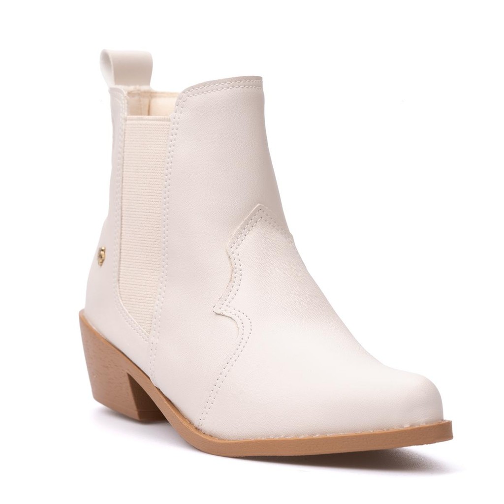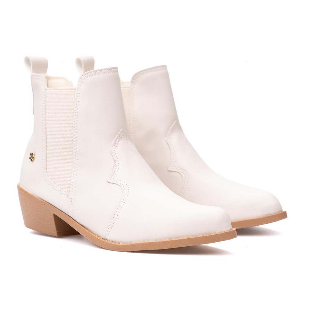 Bota Menina Fashion Chelsea Infantil Bordada Bico Fino Salto Bloco