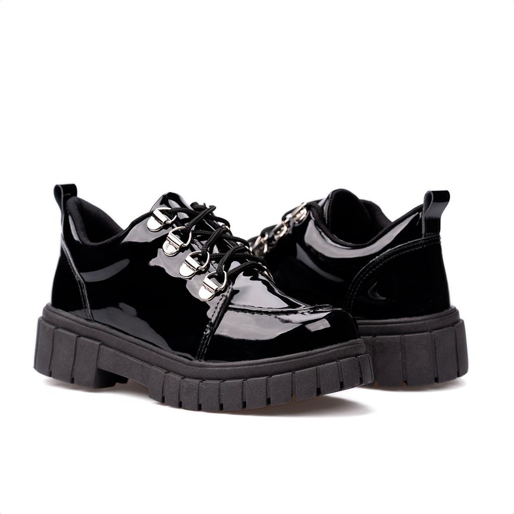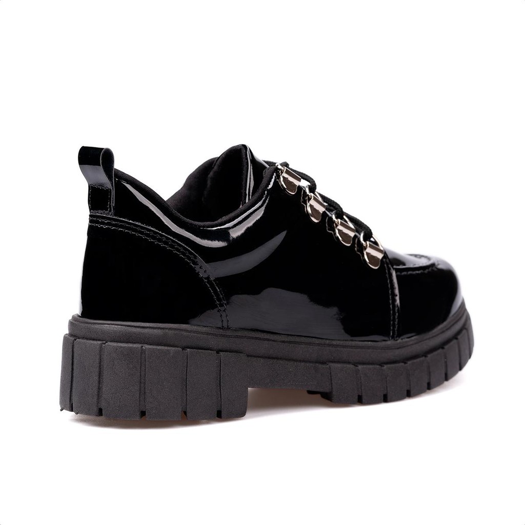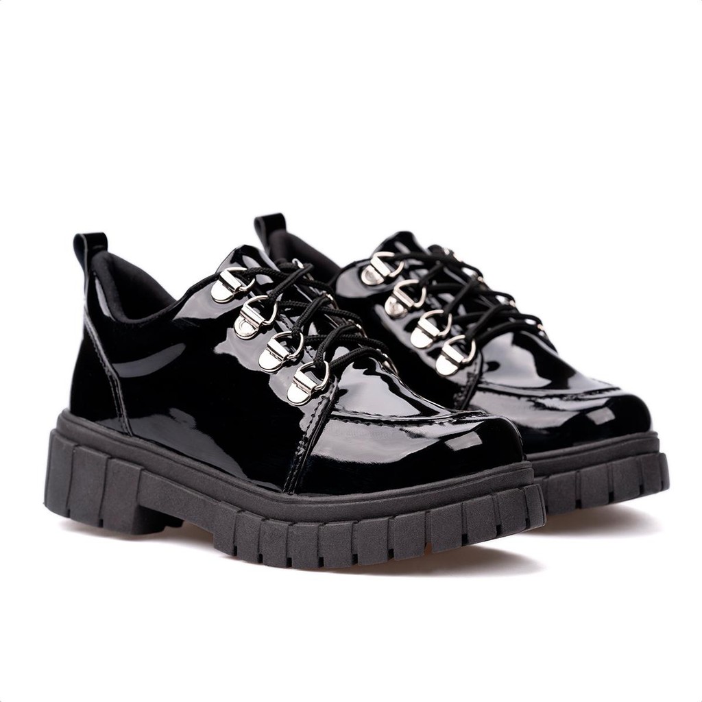 Mocassim Sapato Oxford Infantil Feminino Verniz Tratorado Preto Menina Fashion