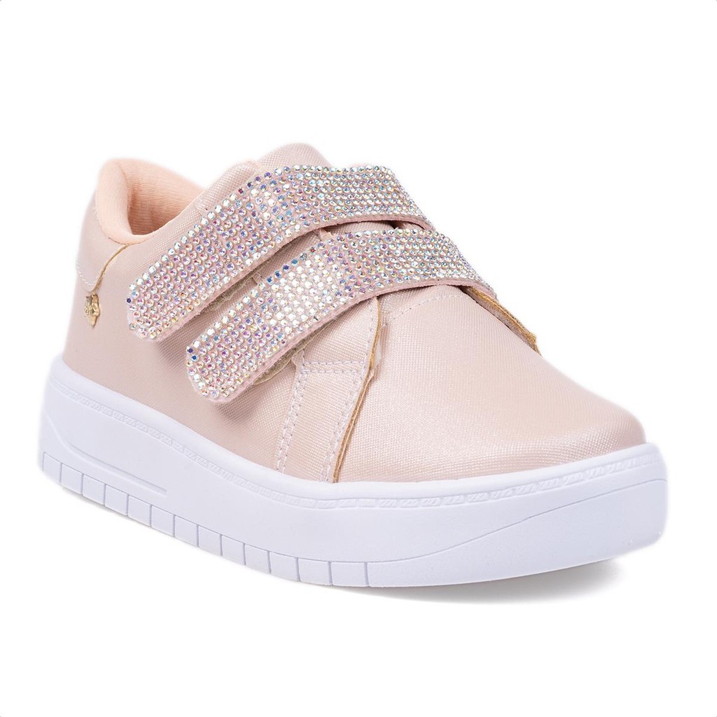 Tênis Infantil Menina Fashion Casual Calce Fácil Tiras Strass Moda