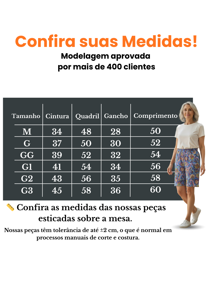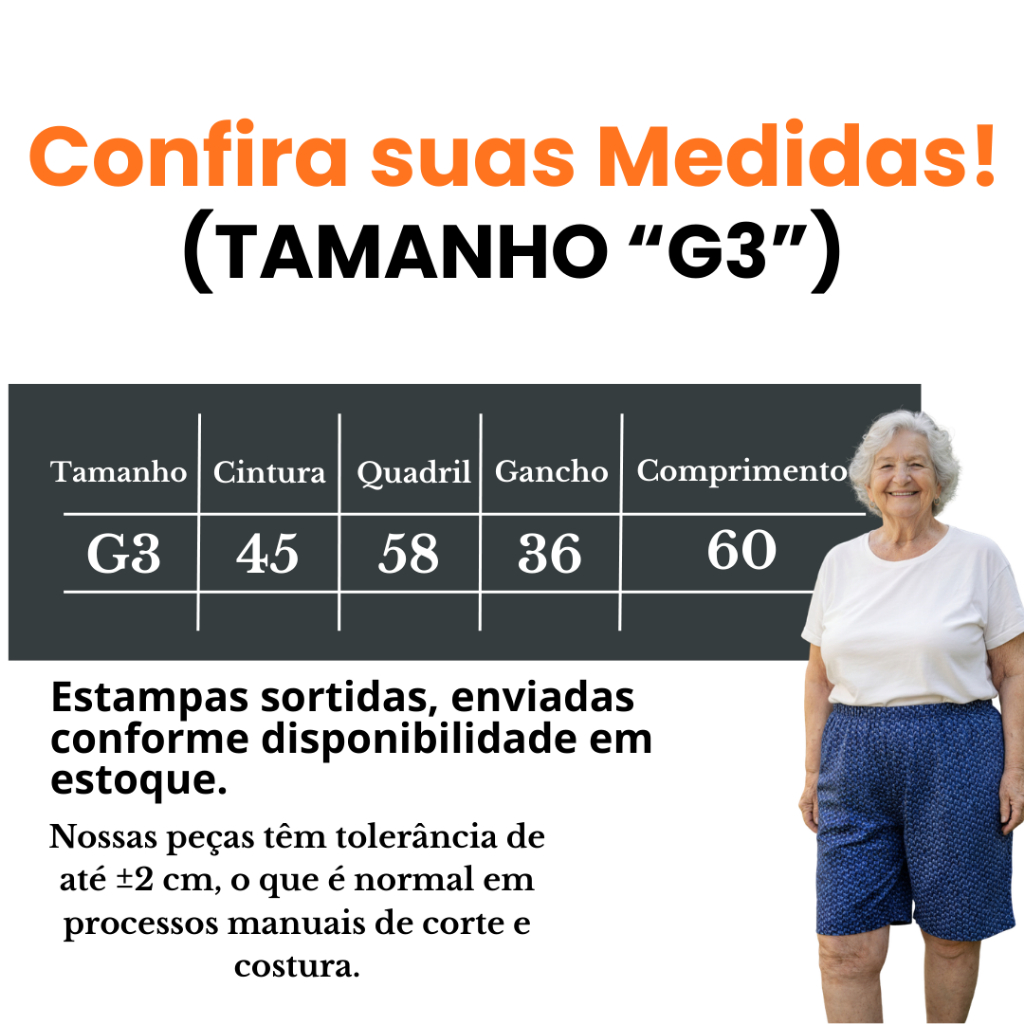 Kit 3 Bermudas Senhora Idosa em Malha Fria Confortável Dia a Dia