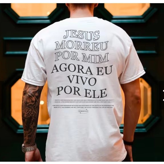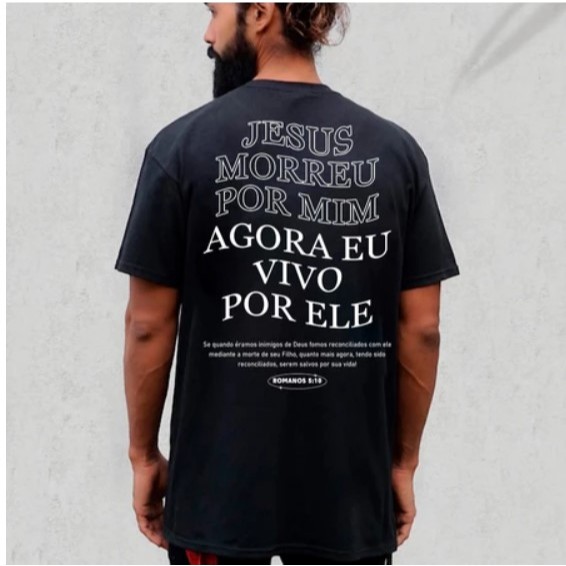 Camiseta Unissex Algodão Gospel Cristã Agora Vivo Por Ele Jesus