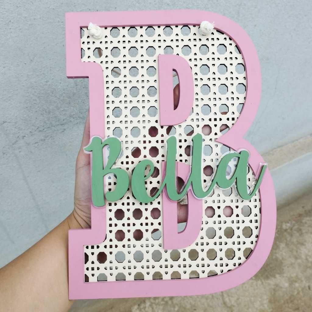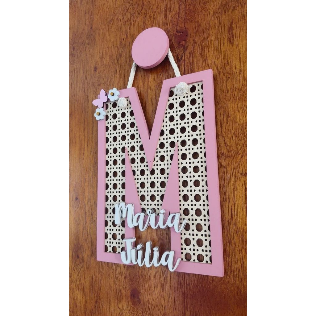 Enfeite Porta maternidade Letra Palha indiana com Nome em MDF Decoração de Parede de Quarto Infantil
