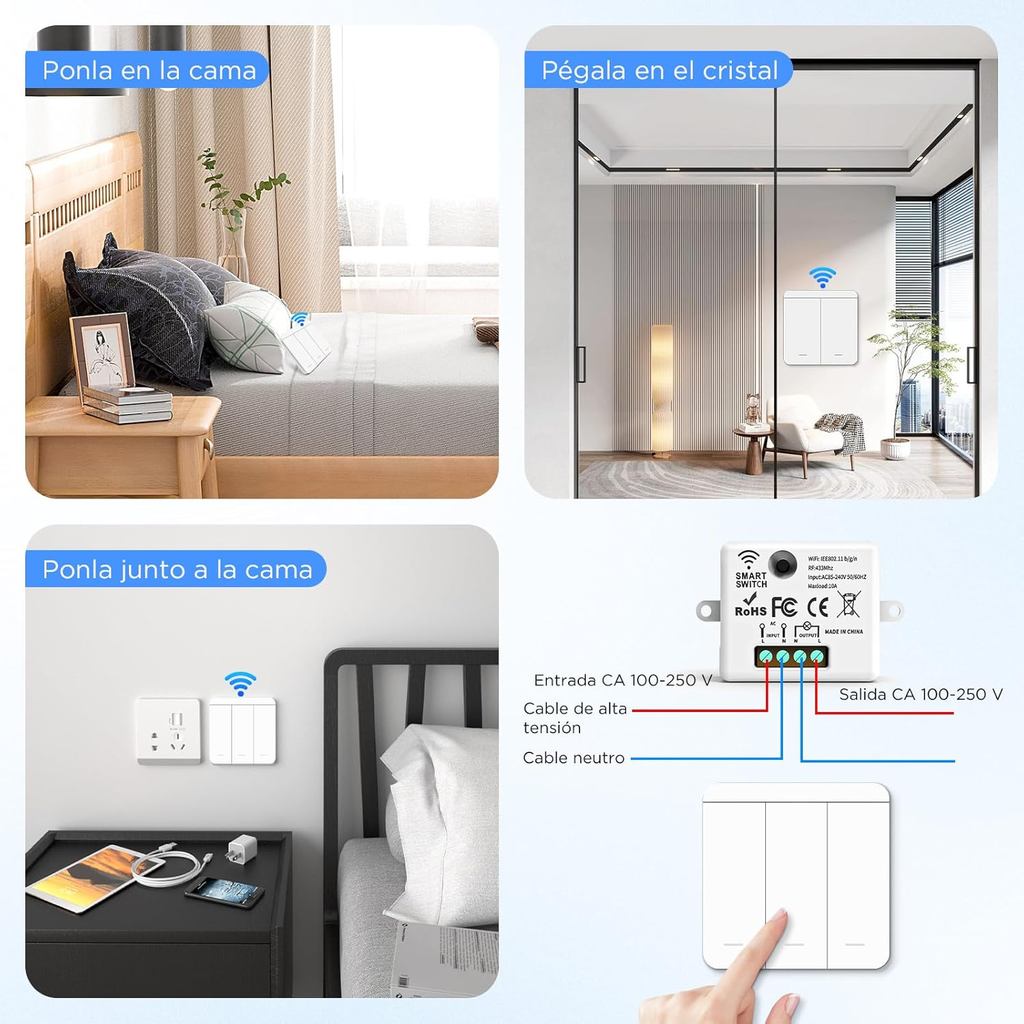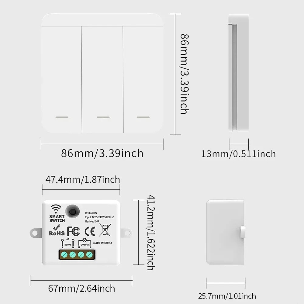 Interruptor sem fio RF 433Mhz Controle remoto inteligente de luz Painel de parede