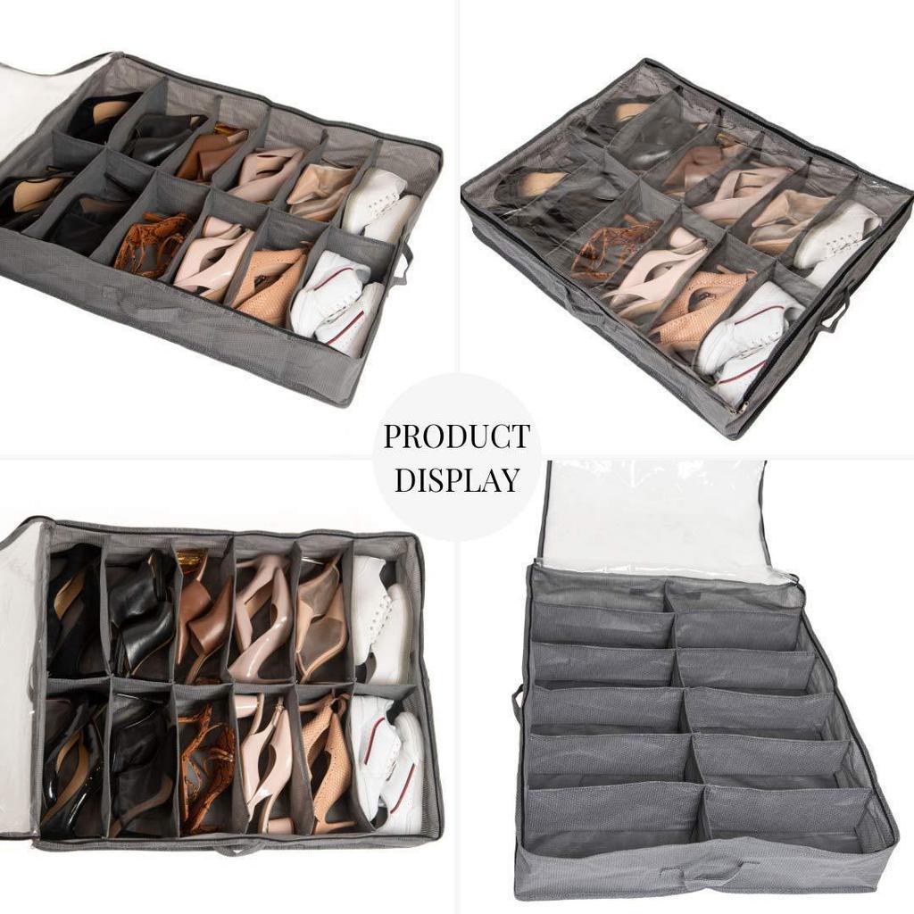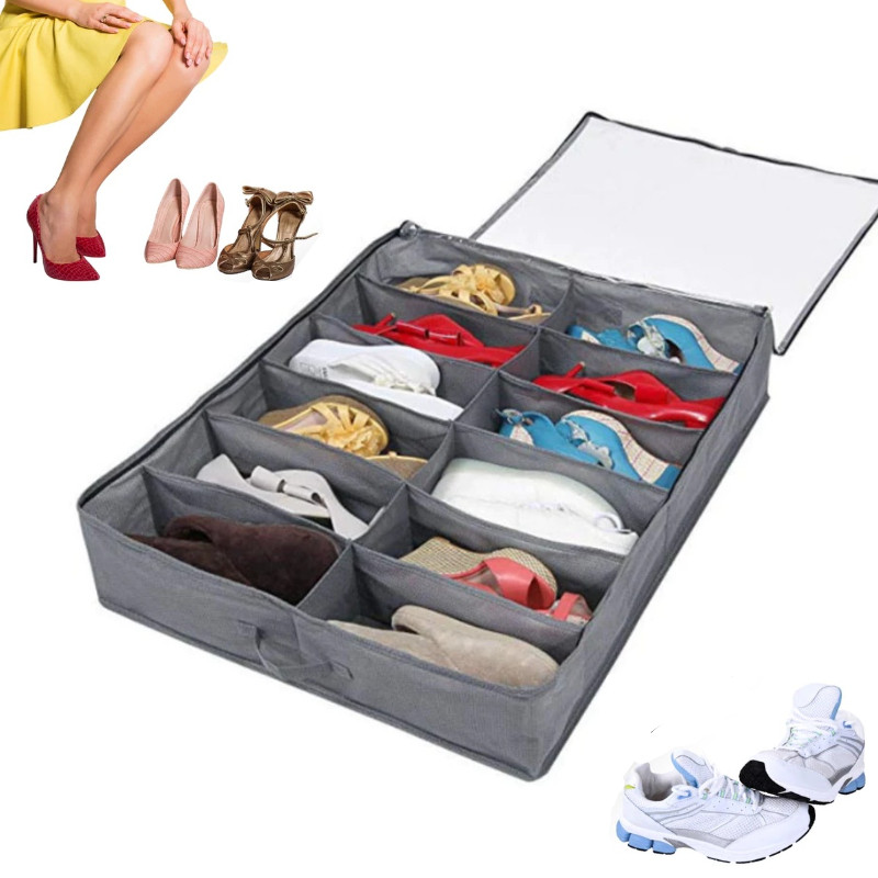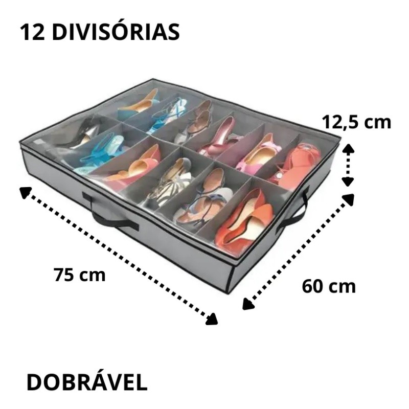 Colméia Organizadora Sapato Grande com Tampa Transparente e fechamento com Zíper 12 divisórias