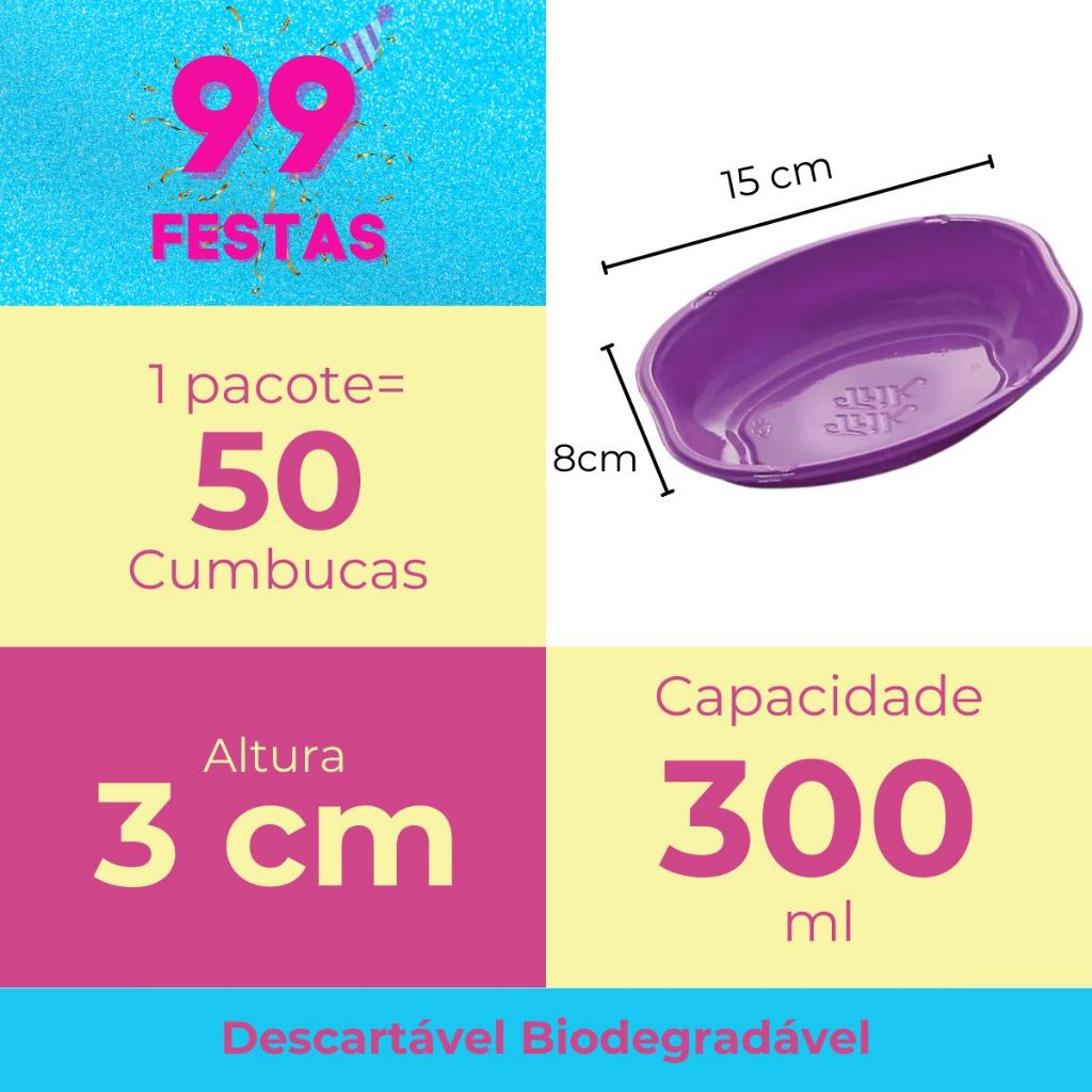 Cumbucas Oval Descartáveis 50 unidades