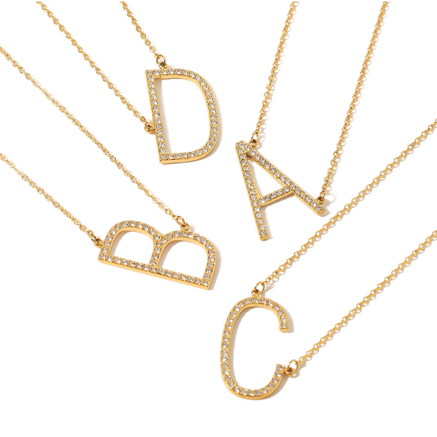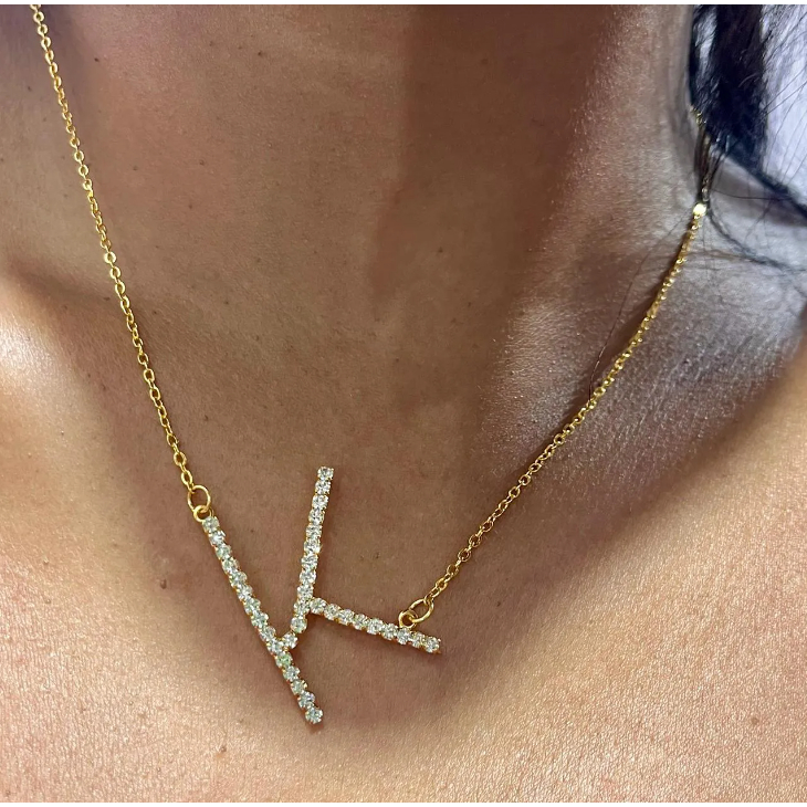 Moda Colar Com Pingente de Letra Inicial nome Feminino Cravejada Folheado Dourado E Prata