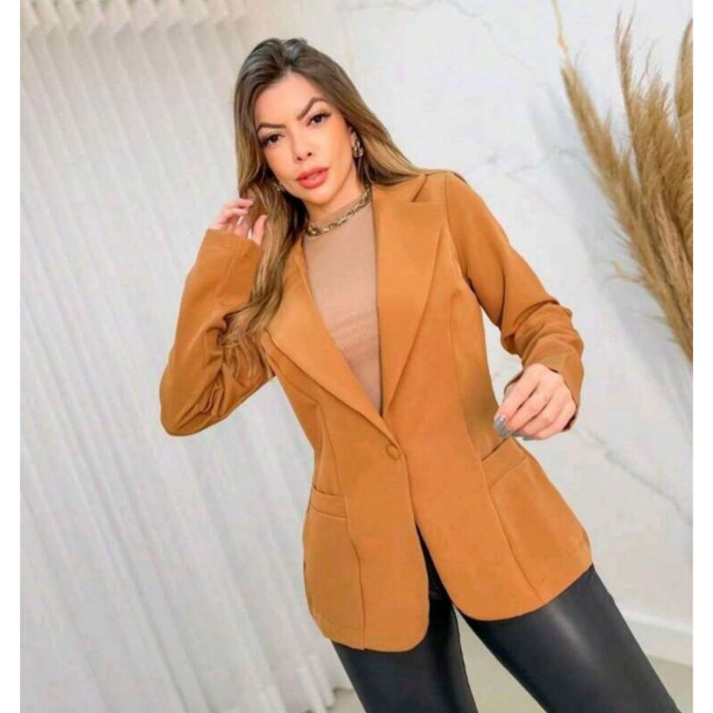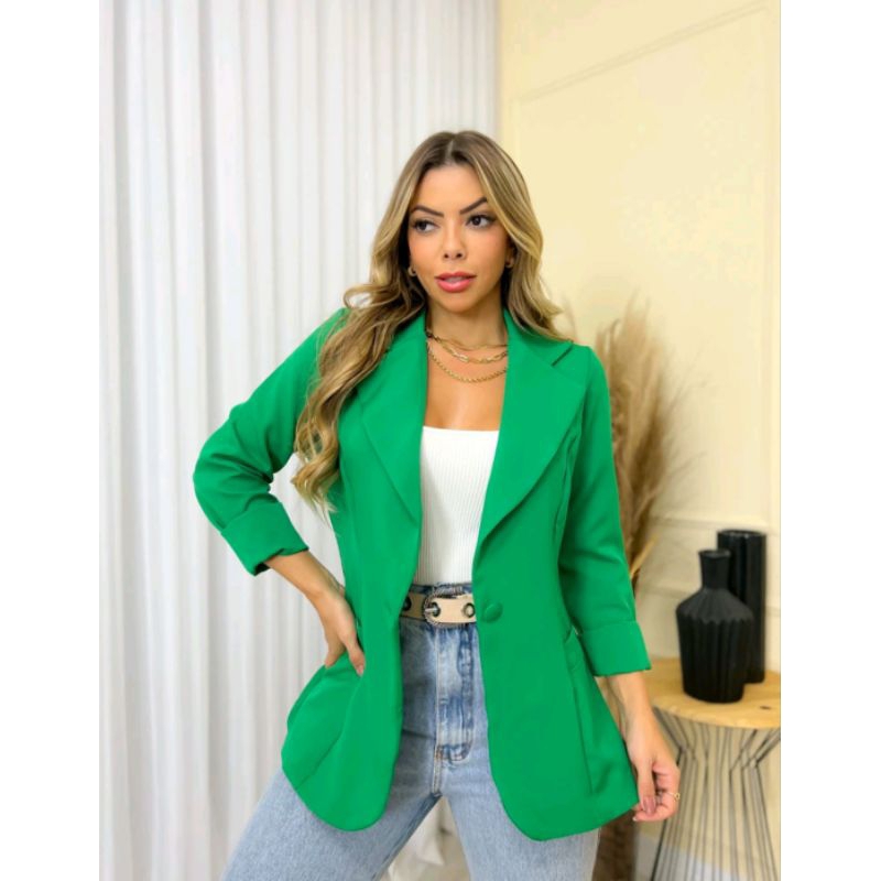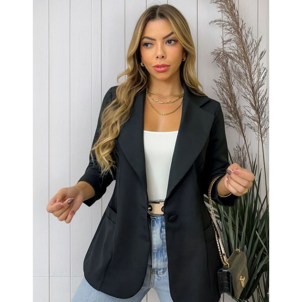 Blazer Feminino Casaquinho Alfaiataria Maxi Alongado Casaco Social Com Botão
