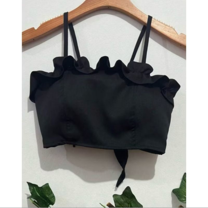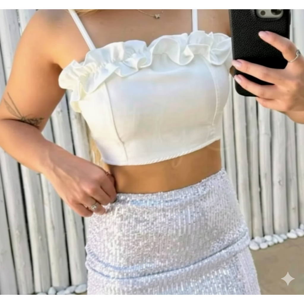 cropeed feminino alfaiataria babado de alça