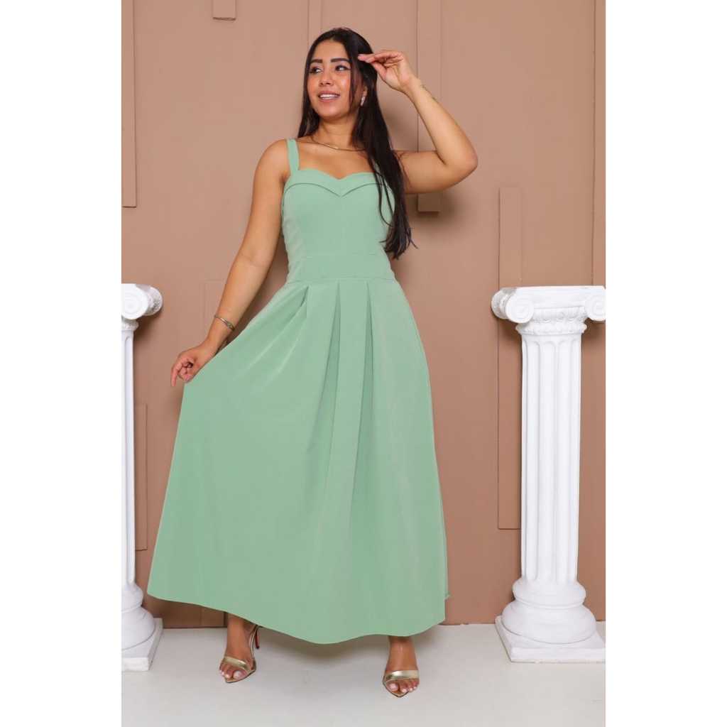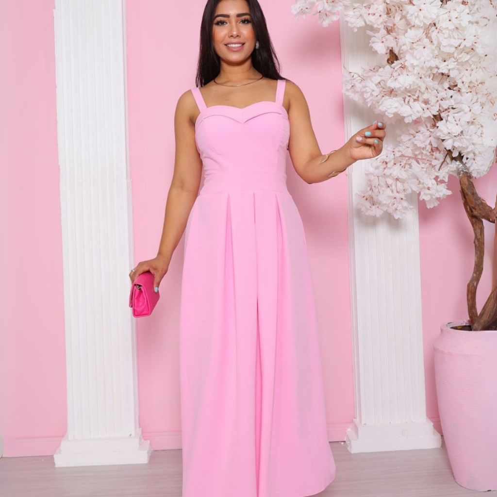 Vestido Longo Duna Elegante Alça Grossa Feminina Lastex Nas Costas Luxo Para Festa