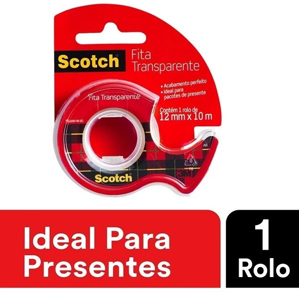 Fita Adesiva Transparente 12MM X 10M 3M SCOTCH C/ Dispenser
