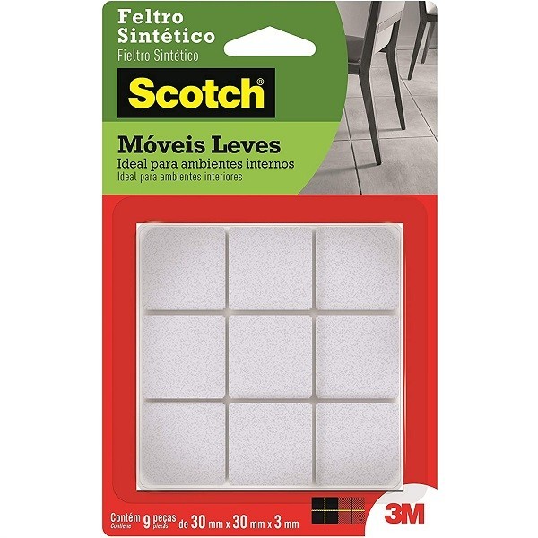 Feltro Adesivo Cadeira Sofa Quadrado G 30MM com 9 SCOTCH 3M
