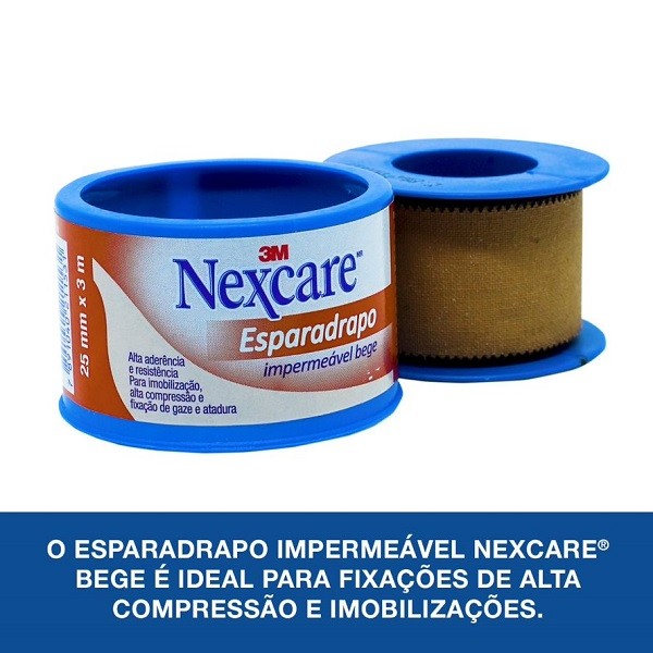 Kit com 2 Esparadrapo Impermeavel Nexcare Bege 25MM X 3M