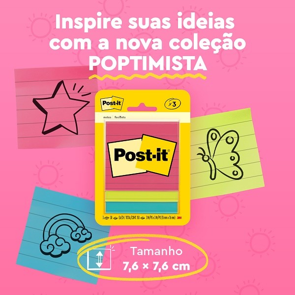 POST-IT Cascata Pautado 76MM X 76MM 3 Blocos