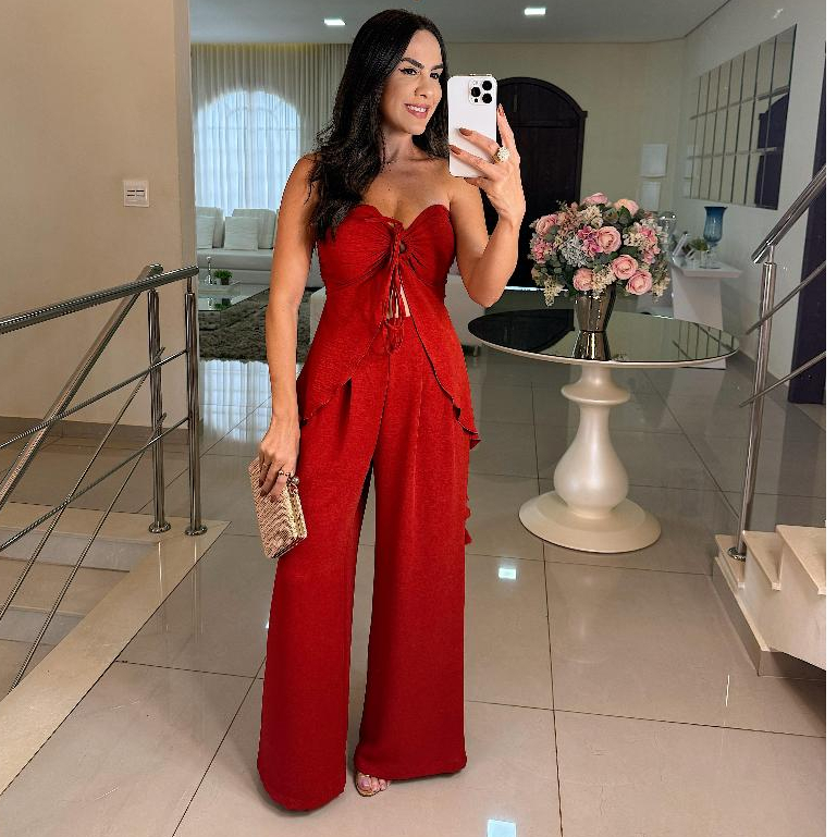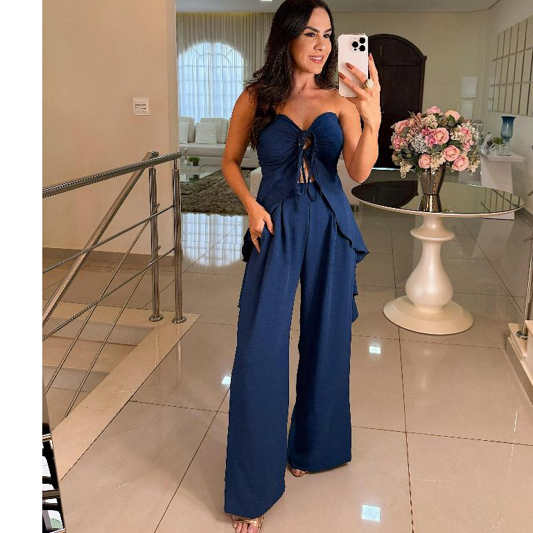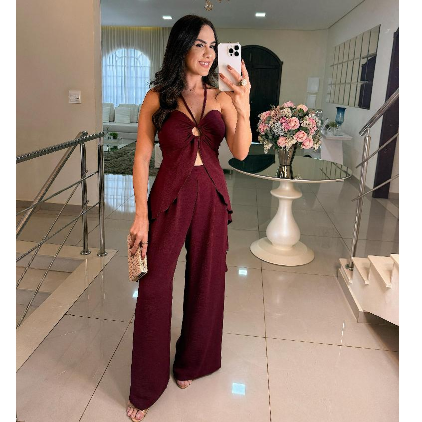 Conjunto Boho Chic Top e Calça Pantalona Duna