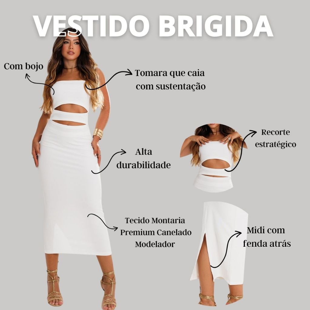 Vestido Feminino Elegante Midi Com Detalhe E Tomara Que Caia Luxo Montaria Premium
