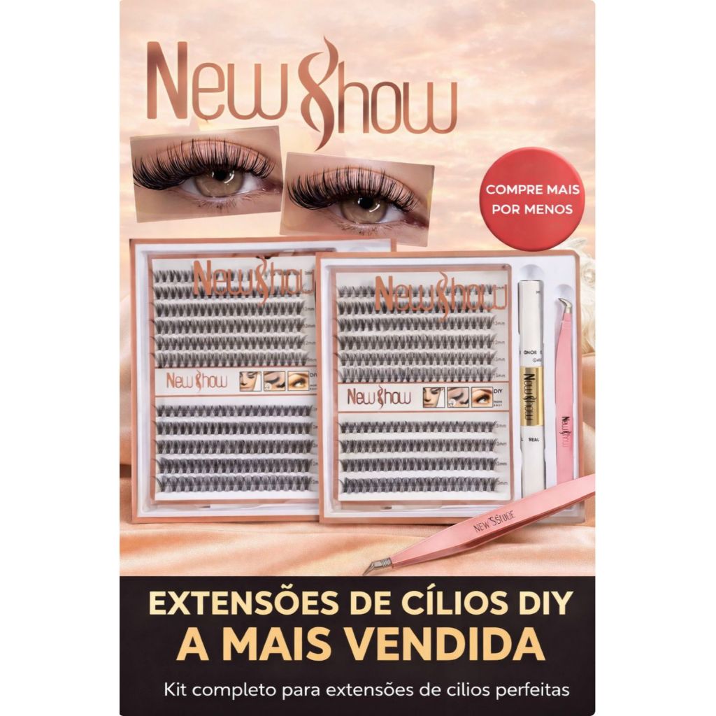 Kit De Extensão De Cílios New Show - Pacote Com 200 Cola E Pinças