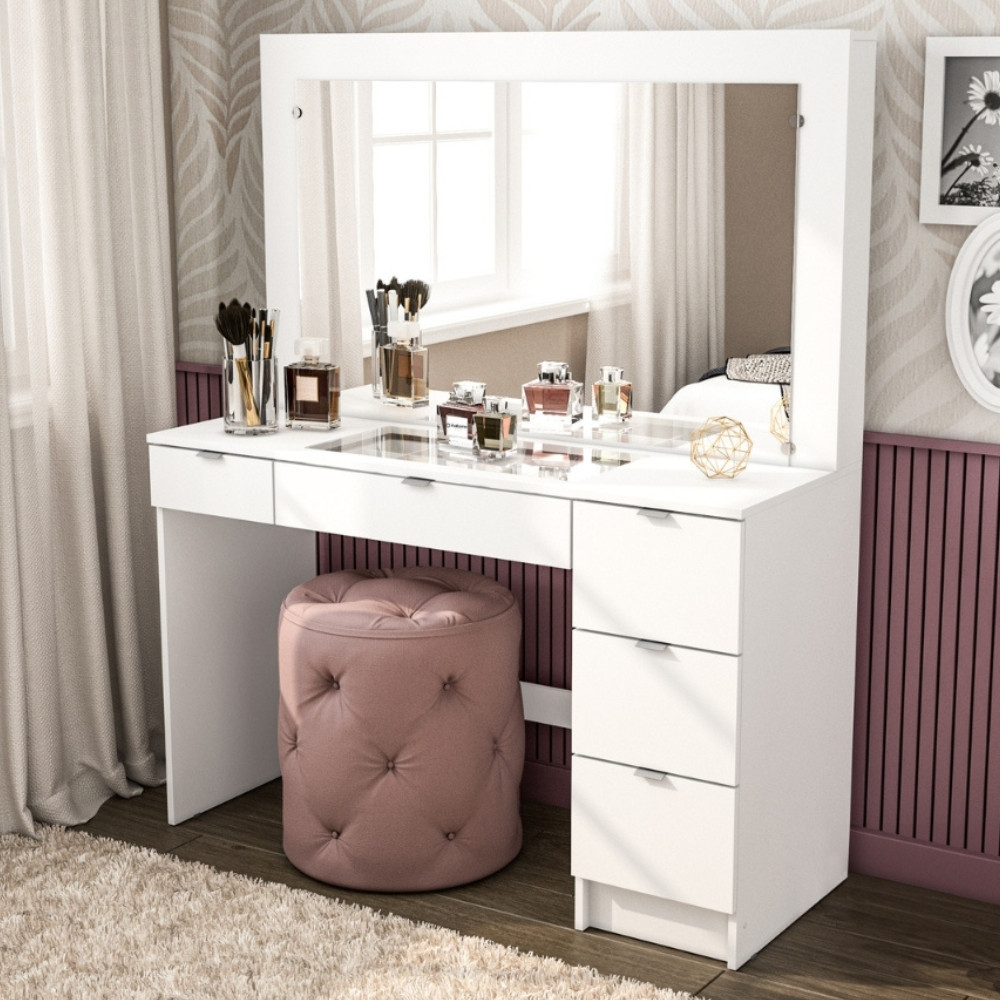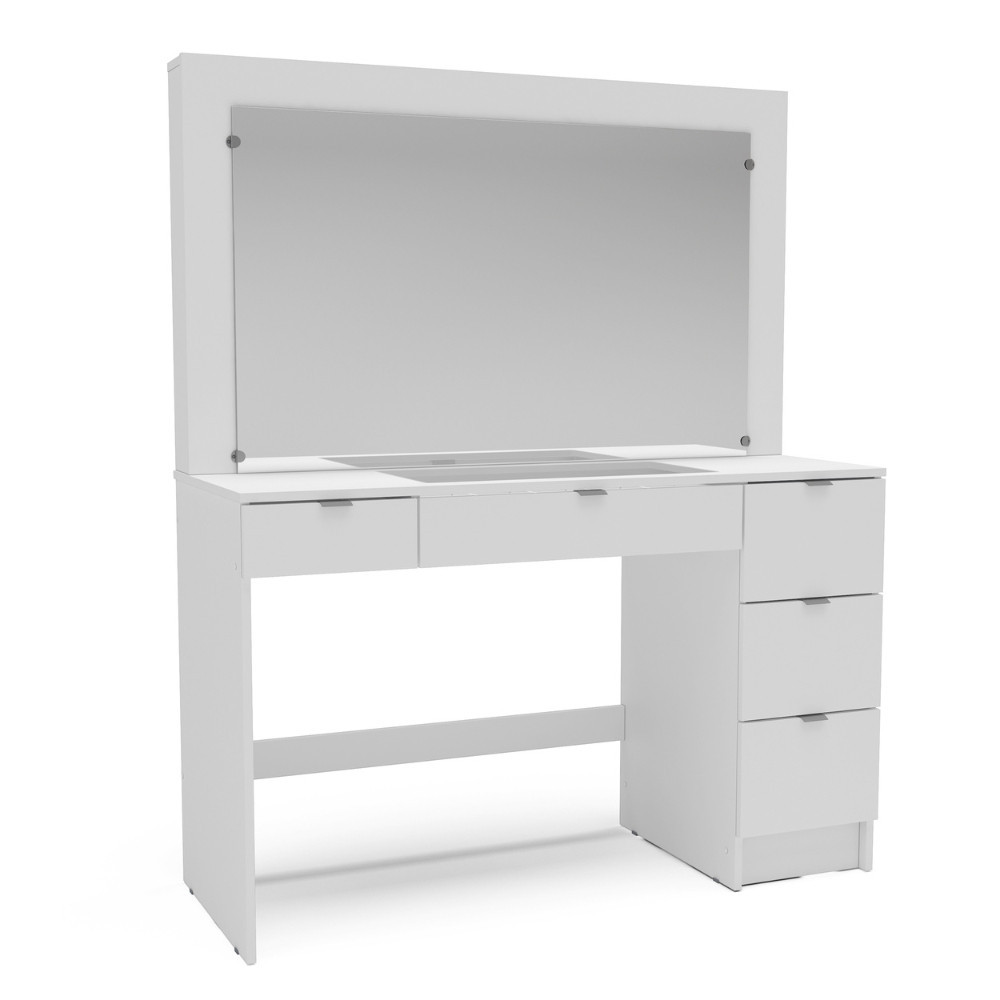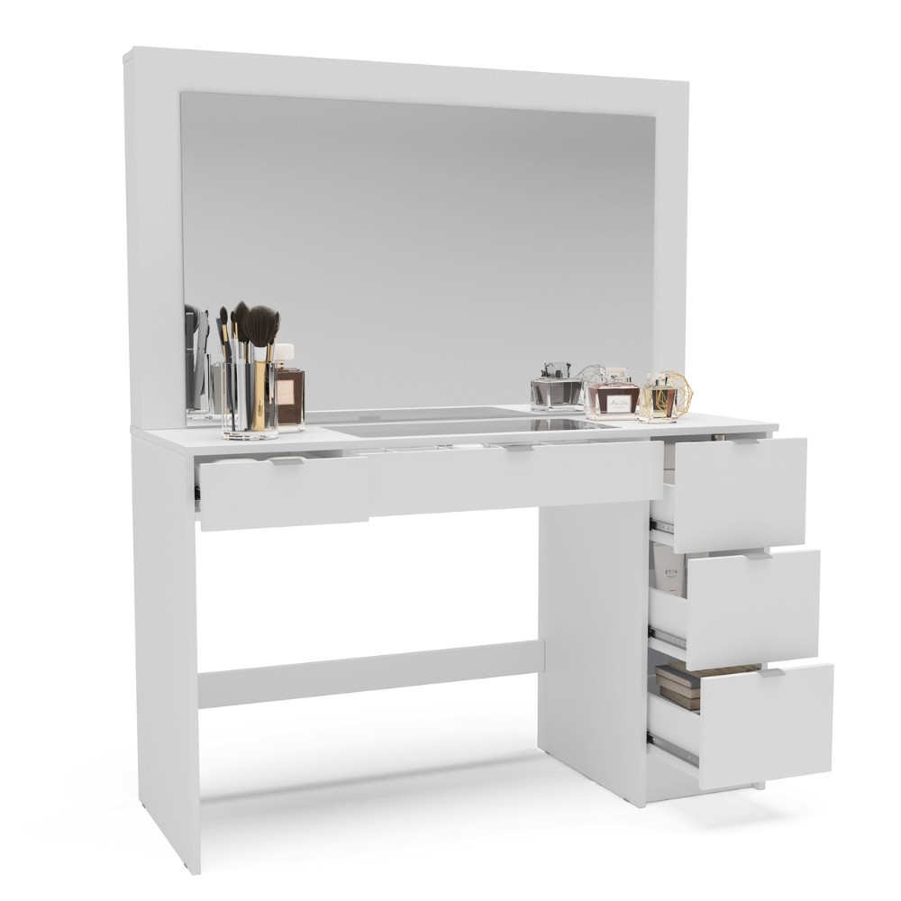 Penteadeira Camarim com Espelho e Visor de Vidro 5 Gavetas Lana Mobikasa