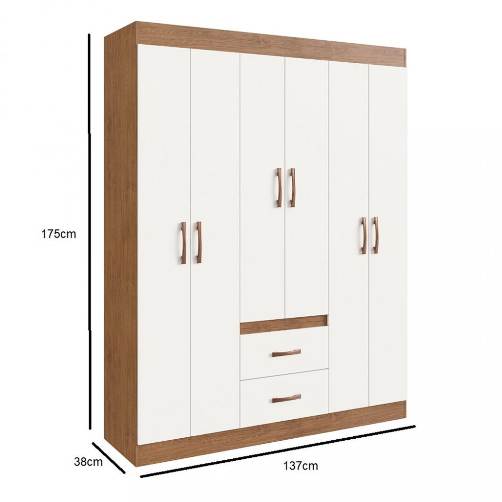 Guarda Roupa Solteiro 6 Portas 2 Gavetas Sidney Doripel