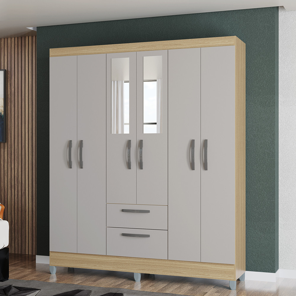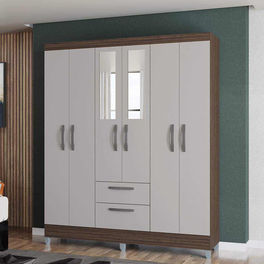 Guarda Roupa Casal com Espelho e Pés 6 Portas 2 Gavetas Multi Poquema