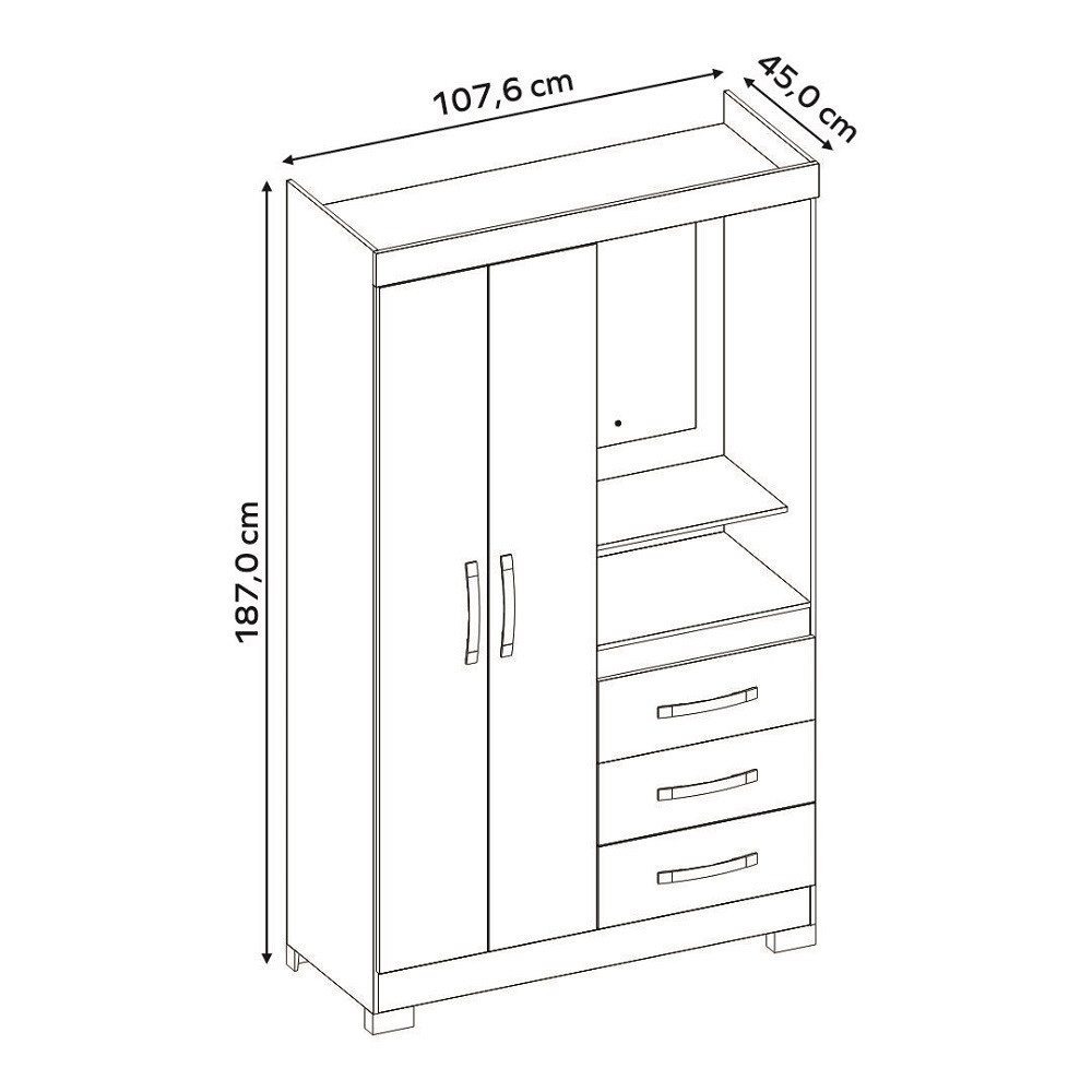 Guarda Roupa Solteiro com Espelho e Pés 2 Portas 3 Gavetas NT 6020 Notável Móveis