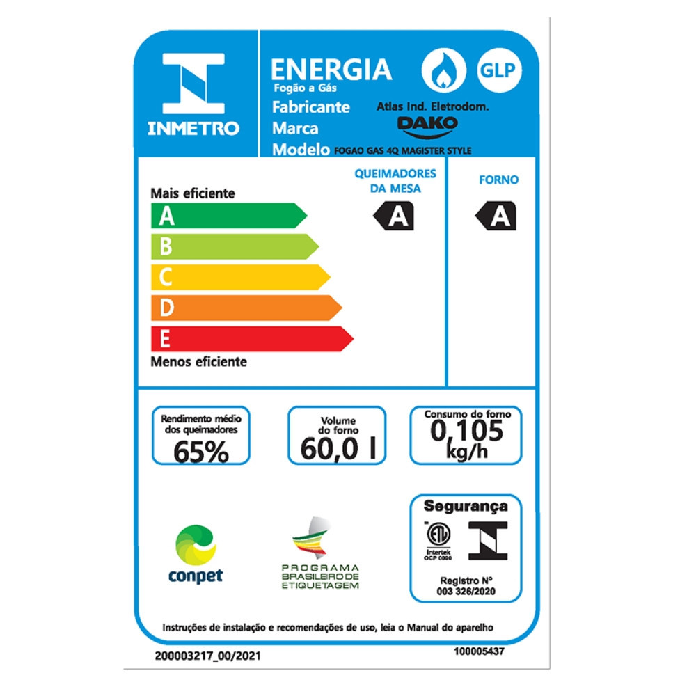 Fogão 4 Bocas Dako Magister Style com Frente de Vidro Espelhado