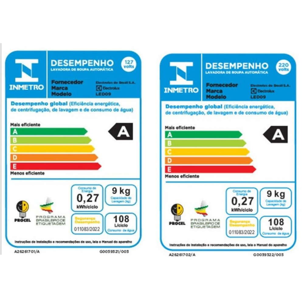 Lavadora de Roupas Electrolux Efficient Care LED09 9Kg