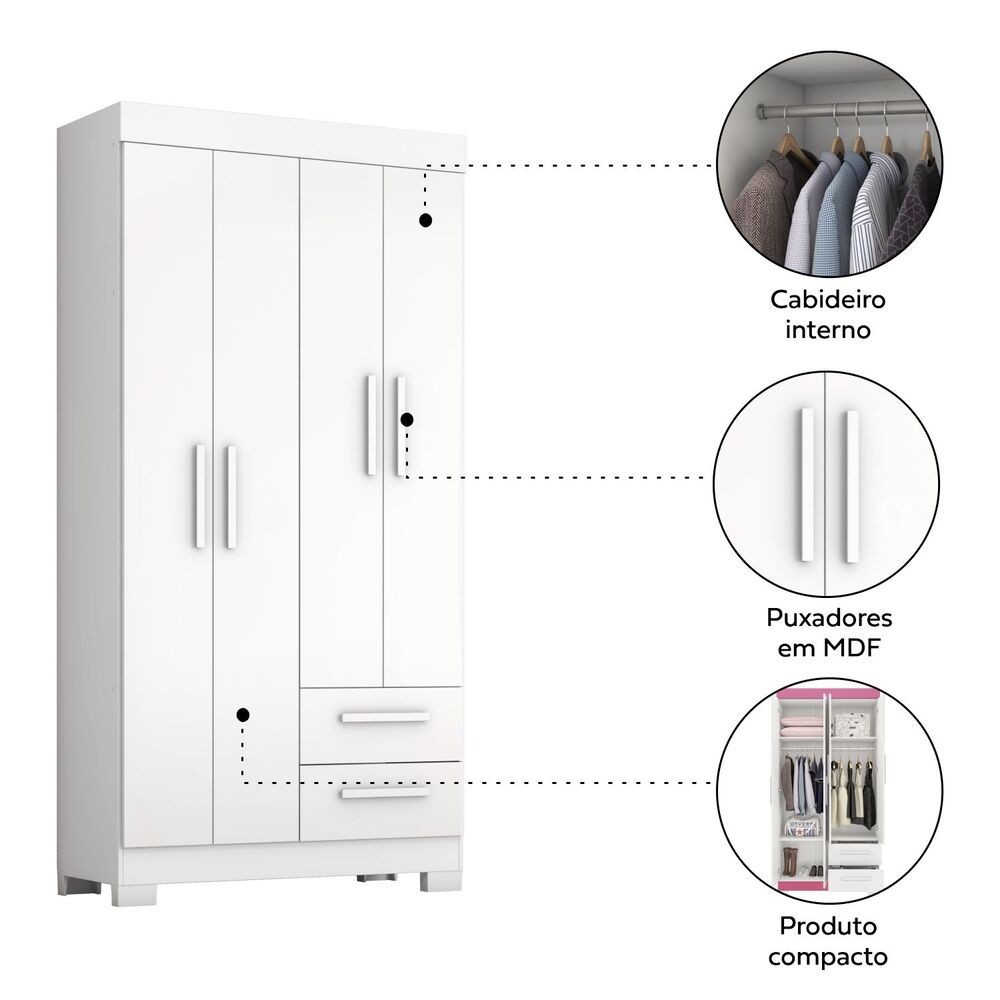 Guarda Roupa Solteiro Flex com Pés 4 Portas 2 Gavetas NT 6010 Notável Móveis