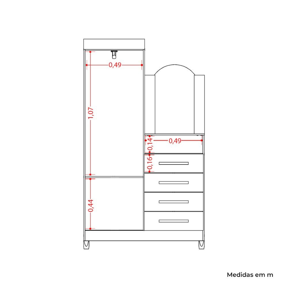 Cômoda Penteadeira 4 Gavetas Espelho Capri Damulti