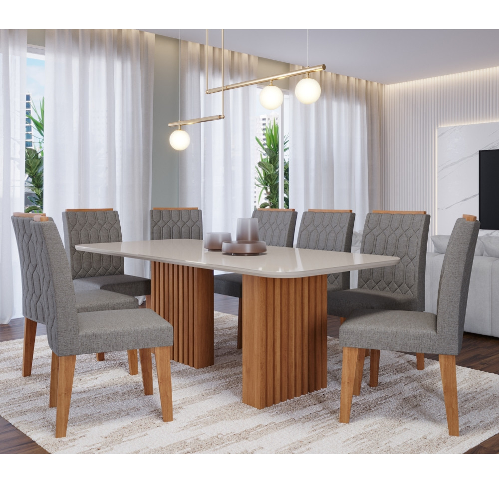 Conjunto Sala de Jantar Mesa 210cm Ester com 8 Cadeiras Carla Cimol