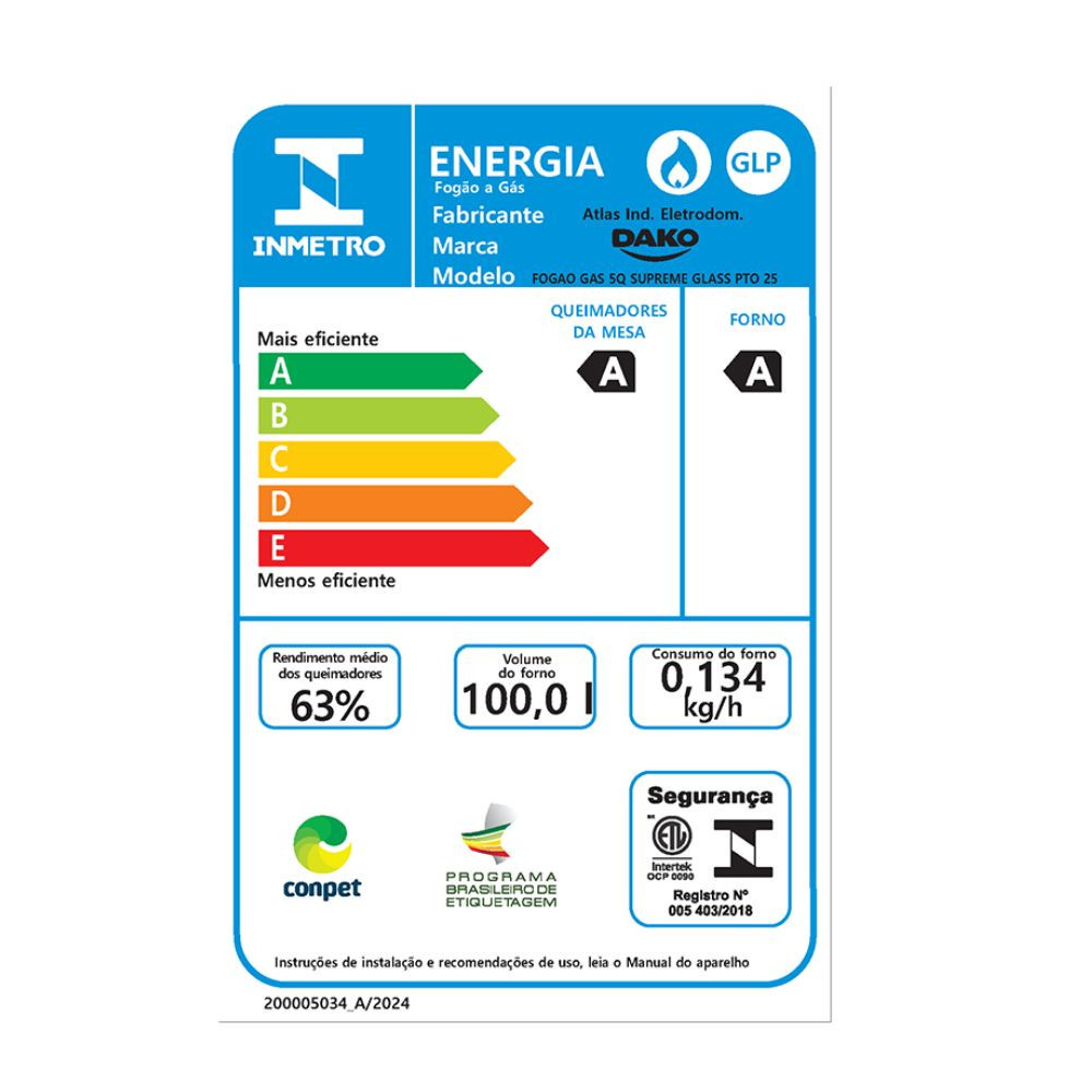 Fogão 5 Bocas Dako Supreme Glass