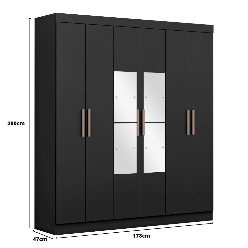 Guarda Roupa Casal com Espelho 6 Portas Genebra Maxel