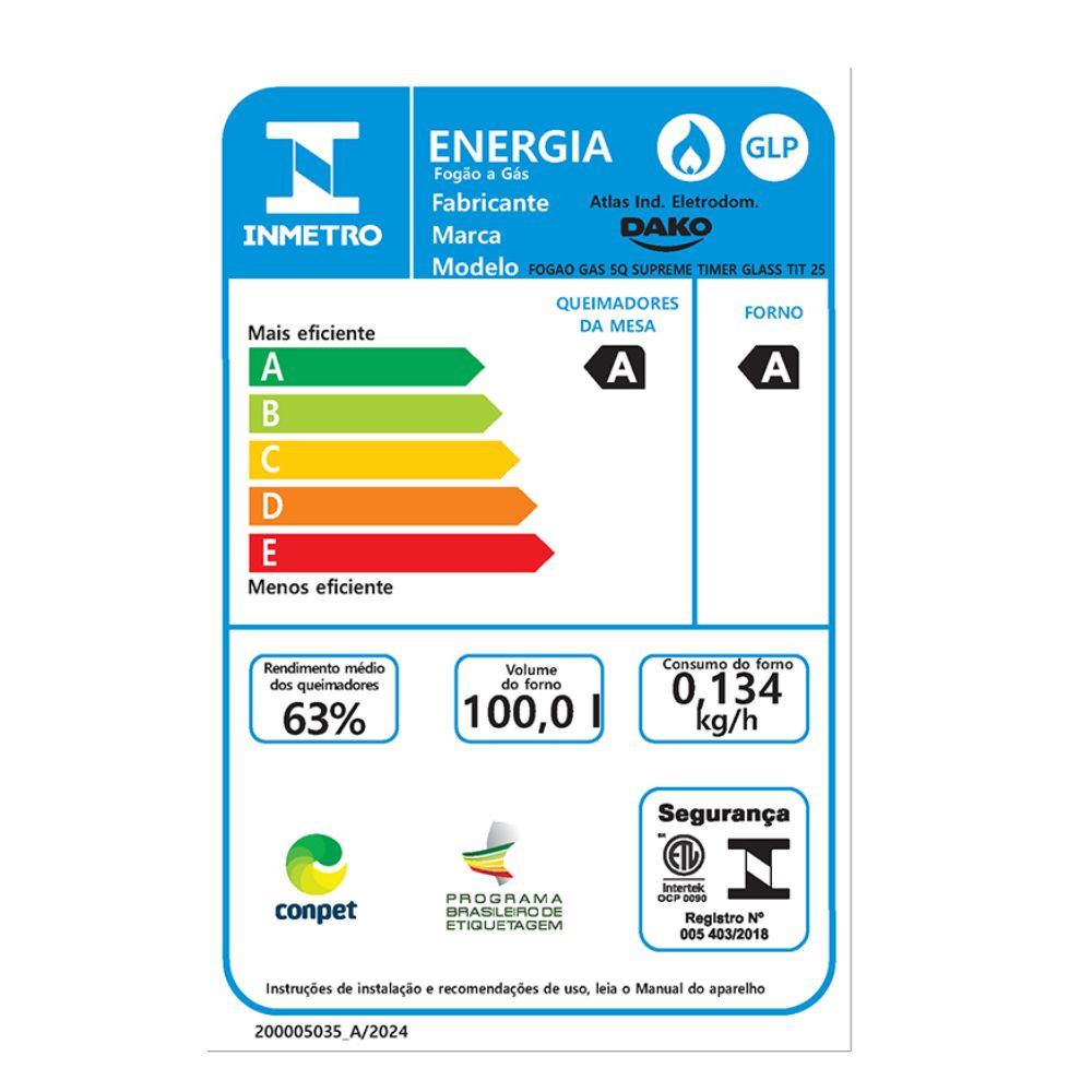 Fogão 5 Bocas Dako Supreme Timer Glass