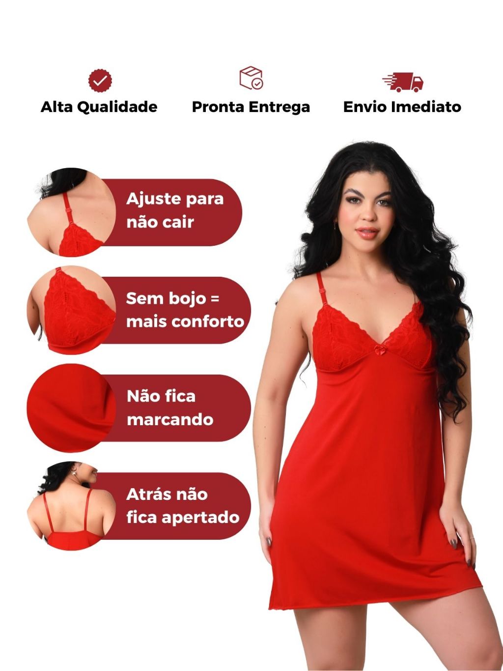 Kit 3 Camisola de Renda Sensual Sexy Feminina Sem Bojo Camisola Sexy de Renda Pijama Verão