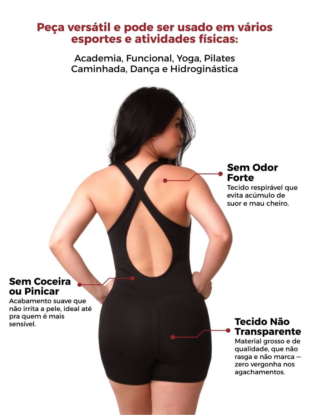 Macaquinho Fitness Academia com Abertura nas Costas Cruzado Roupa Para Academia Treino Fit Suplex