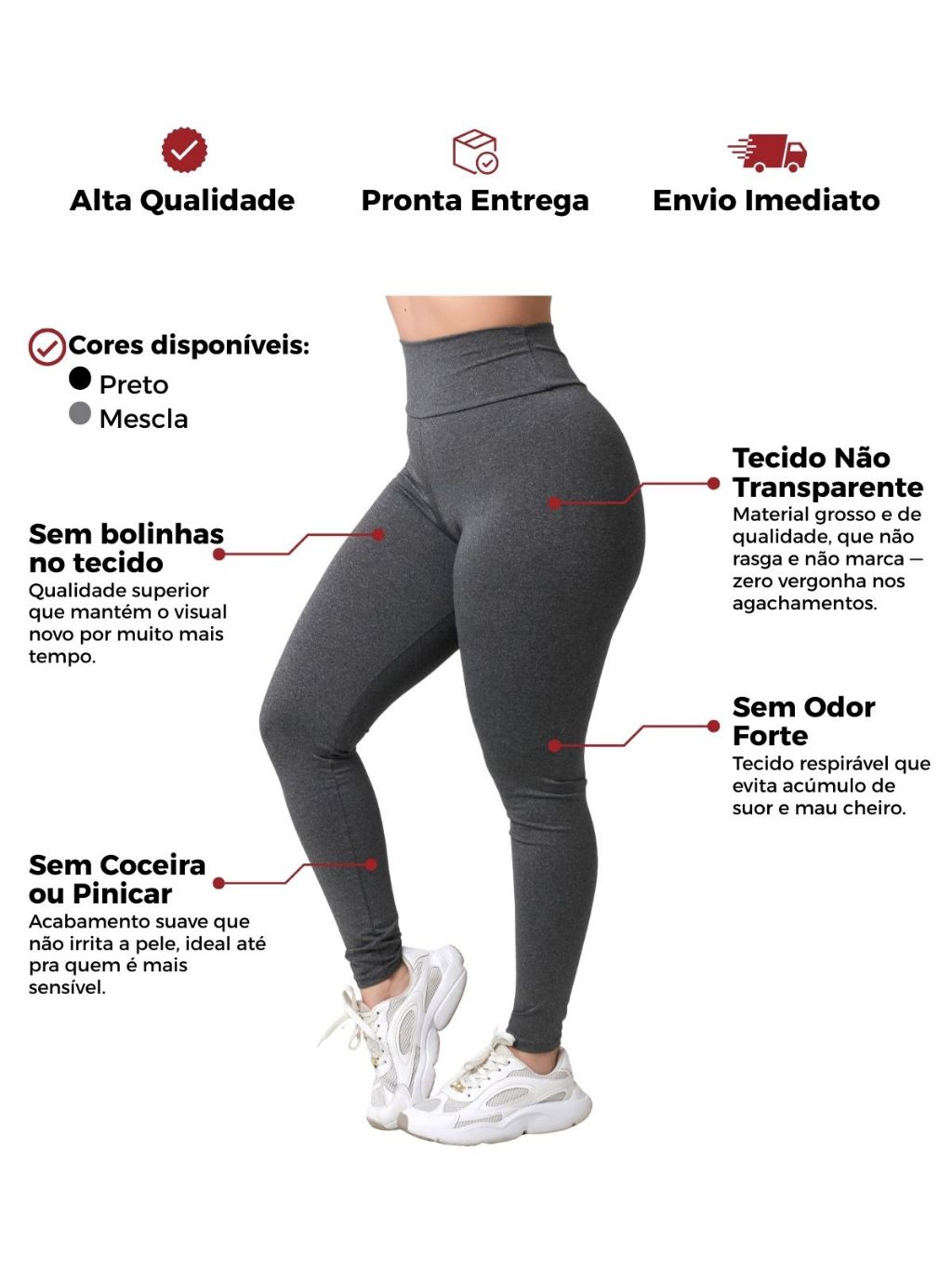 Calça Legging Cintura Alta Básica Zero Transparência Feminina Treino Academia Dia a Dia