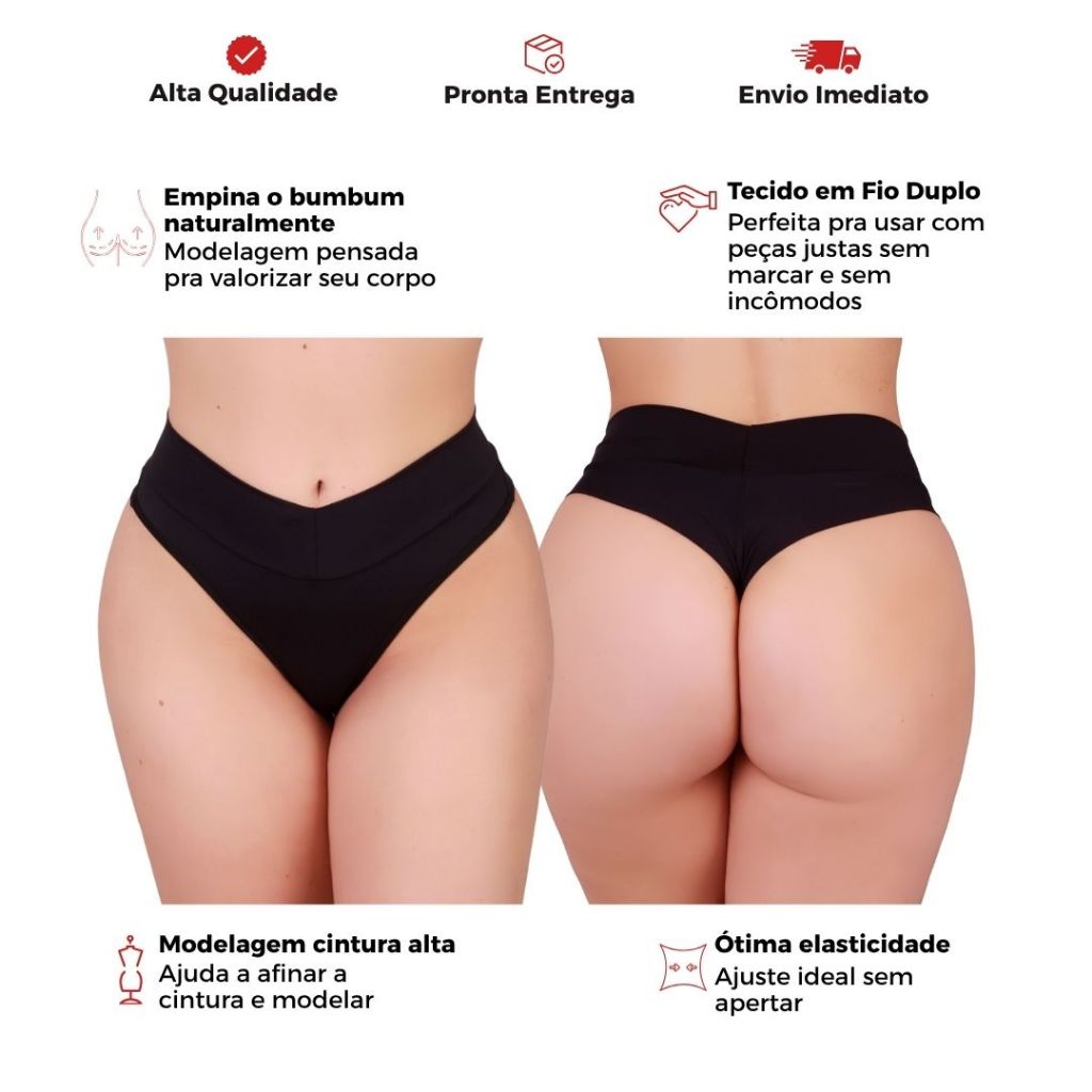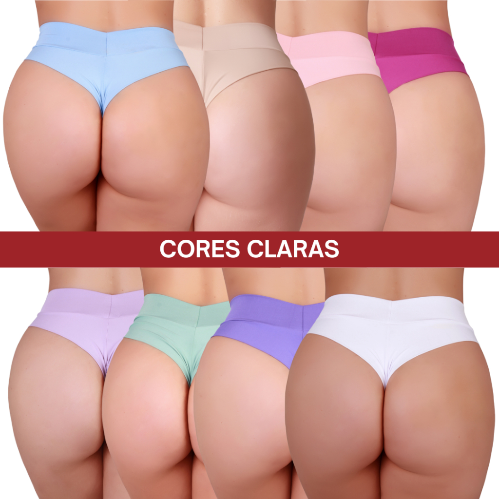 Kit 7 Calcinha Fio Duplo Cintura Alta Cós Alto Básica Reforçada Empina Bumbum Sexy Confortável
