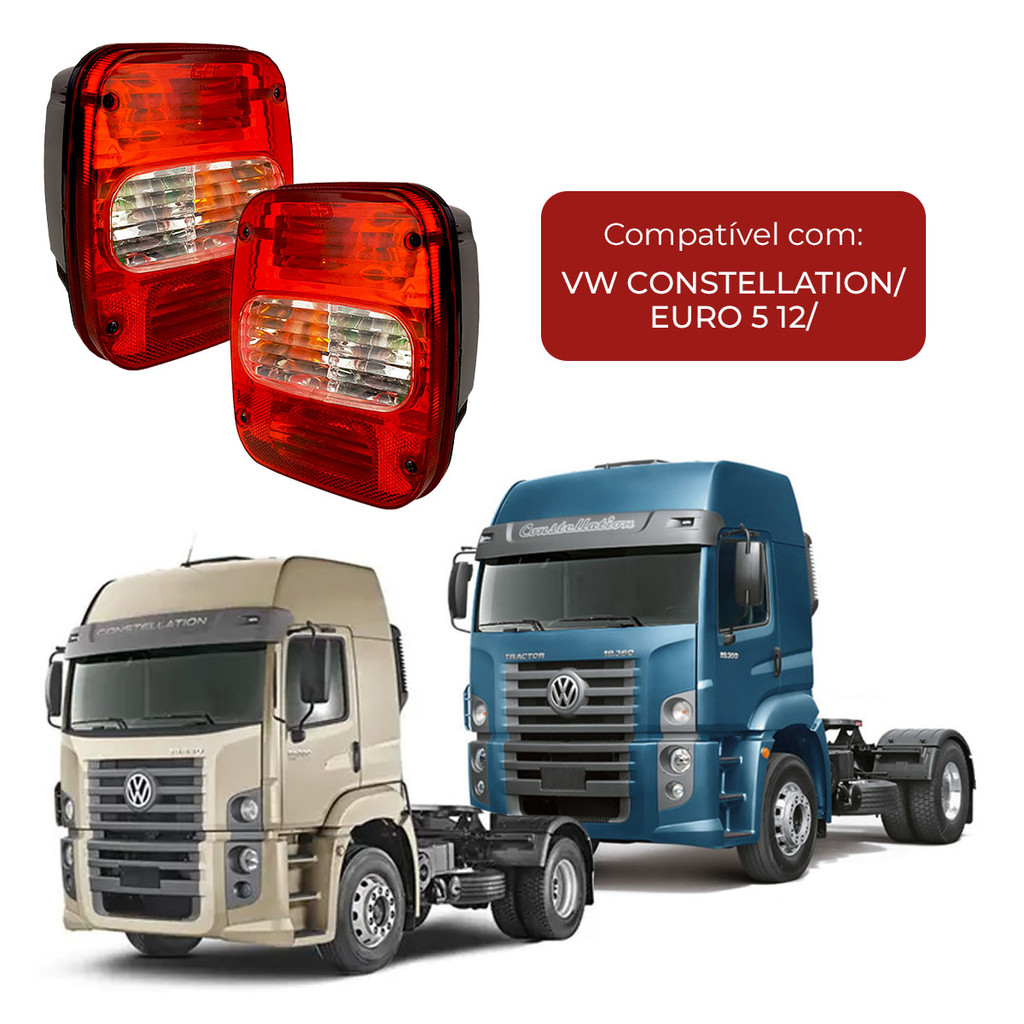 Par Lanterna Traseira Constellation VW Euro 5 12 Lente Bolha Direito Esquerdo Moderna Kit Instalação