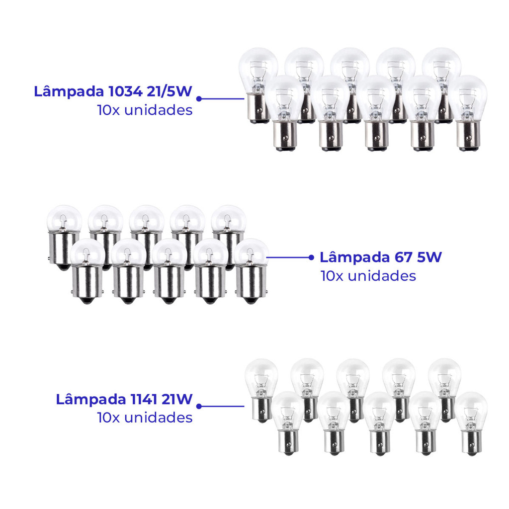 Kit Lâmpadas Carro Revisão 1141 1034 67 12V 21W 5W 30 Unidades Manutenção Automóvel Reposição
