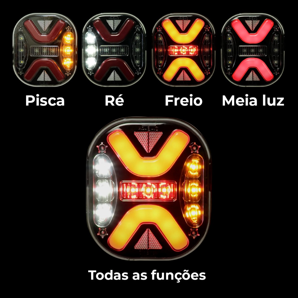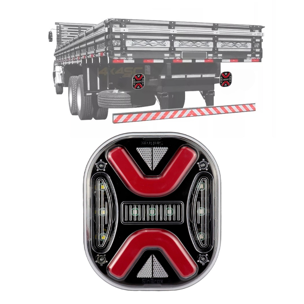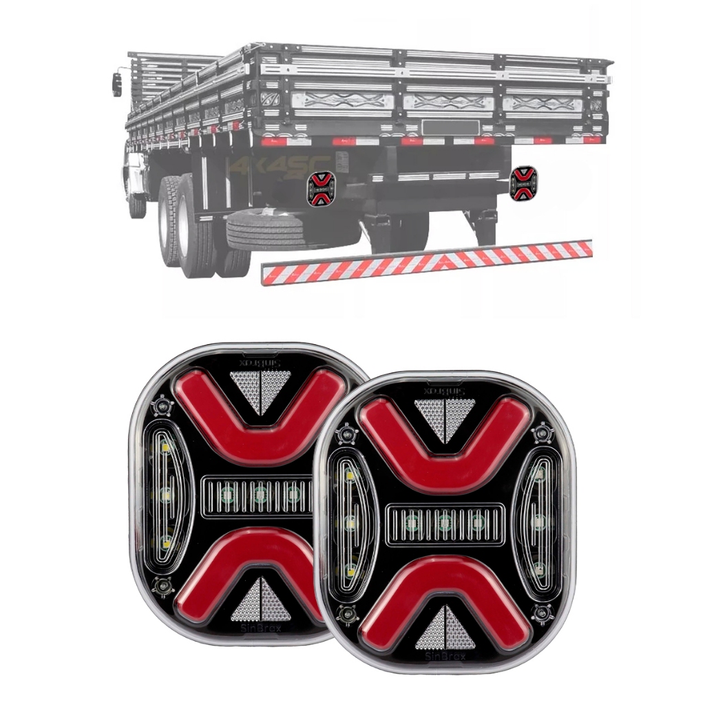 Lanterna Traseira Para Caminhão Led Mex Bivolt Com Pisca Sequencial 24V 12V Rubi Mascara Negra
