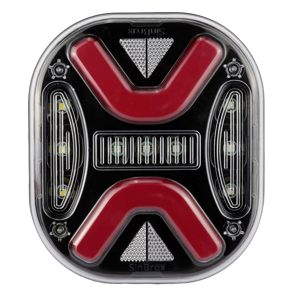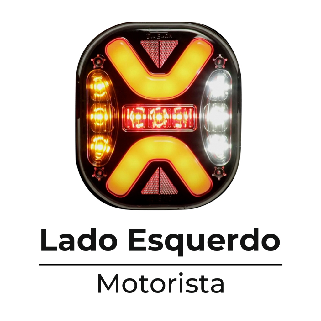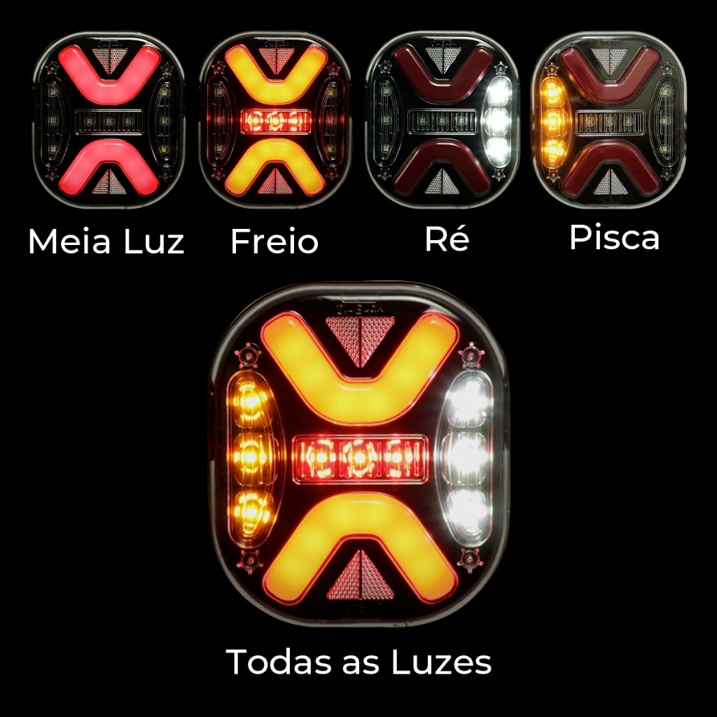 Lanterna Traseira Para Caminhão Led Mex Bivolt Com Pisca Sequencial 24V 12V Rubi Mascara Negra