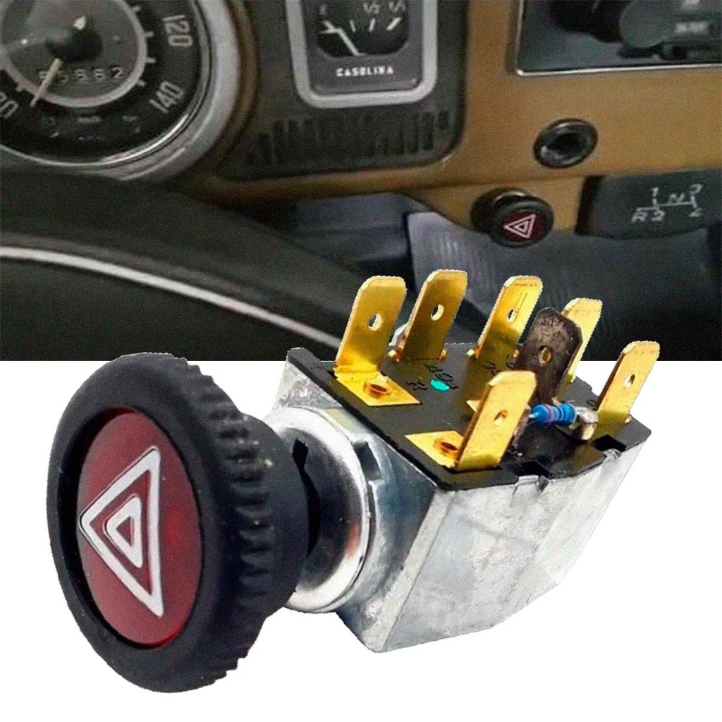 Kit Completo Relé Pisca + Comutador 12v + Interruptor Alerta Carro Fusca Kombi Brasilia 74
