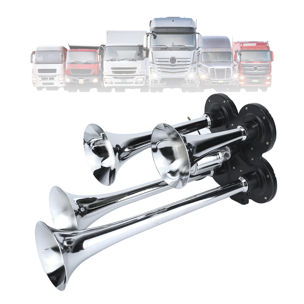 Buzina A Ar 4 Cornetas Cromada Buzina De Caminhão 12V 24V Buzina Marítima Bivolt