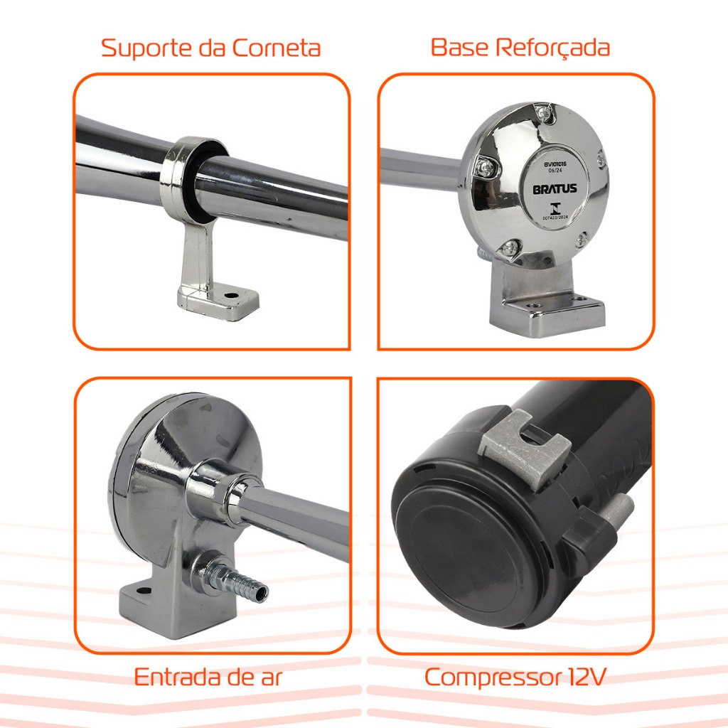 Buzina Marítima Eletropneumática 12V A Ar Carro Automotiva Som De Caminhão Com Compressor