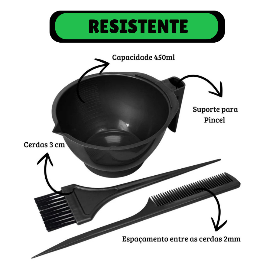 Kit Tintura Pintura de Cabelo Preto 7 Peças Profissional e Resistente