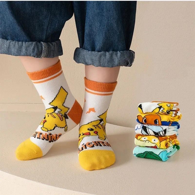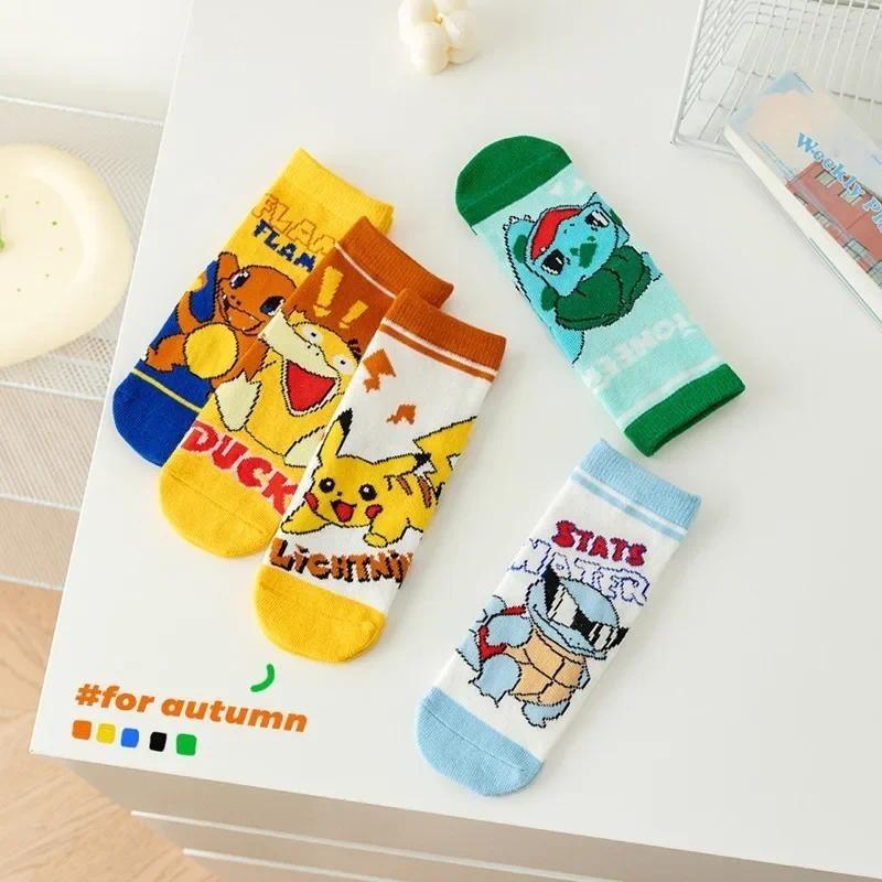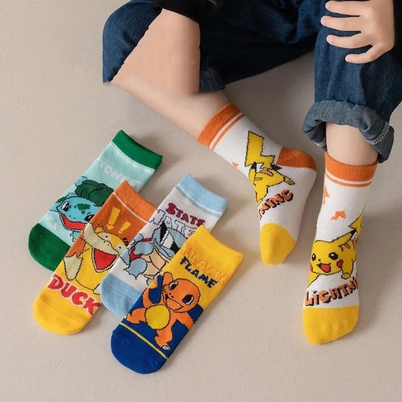 5 Pares De Meias Infantis Pokémon De 1 A 12 Anos , Meninos E Meninas , Presente De Aniversário De Algodão
