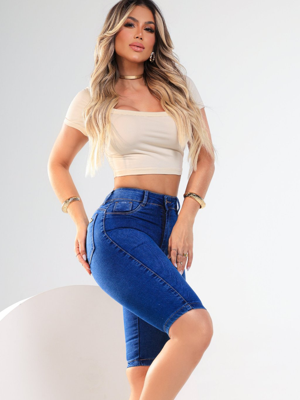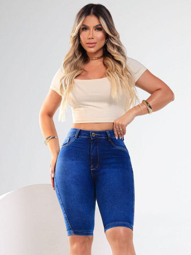Short Bermuda Ciclista Feminina Destroyer Cintura Alta Modelagem levanta bumbum com Lycra