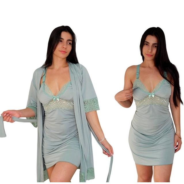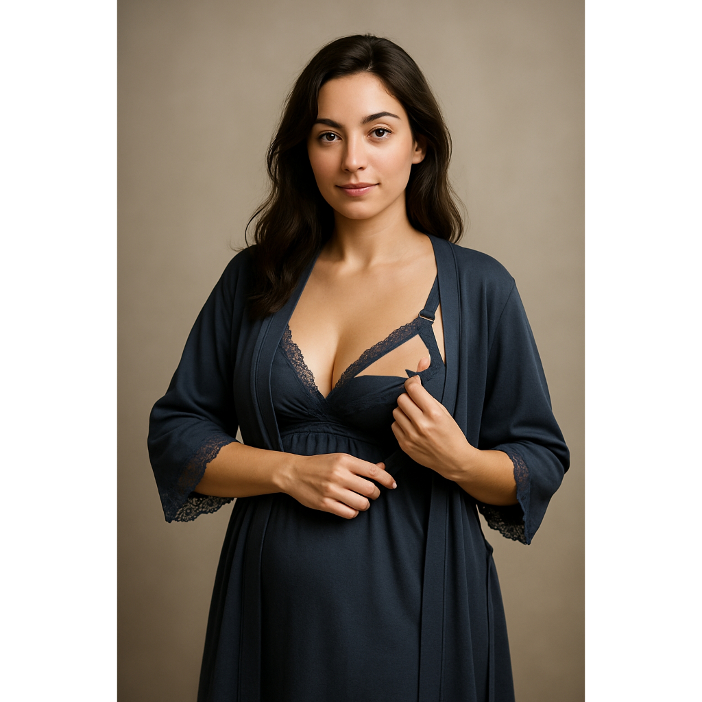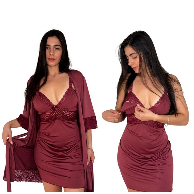 Kit Maternidade Robe Luxo + Camisola Amamentação pós parto Gestante