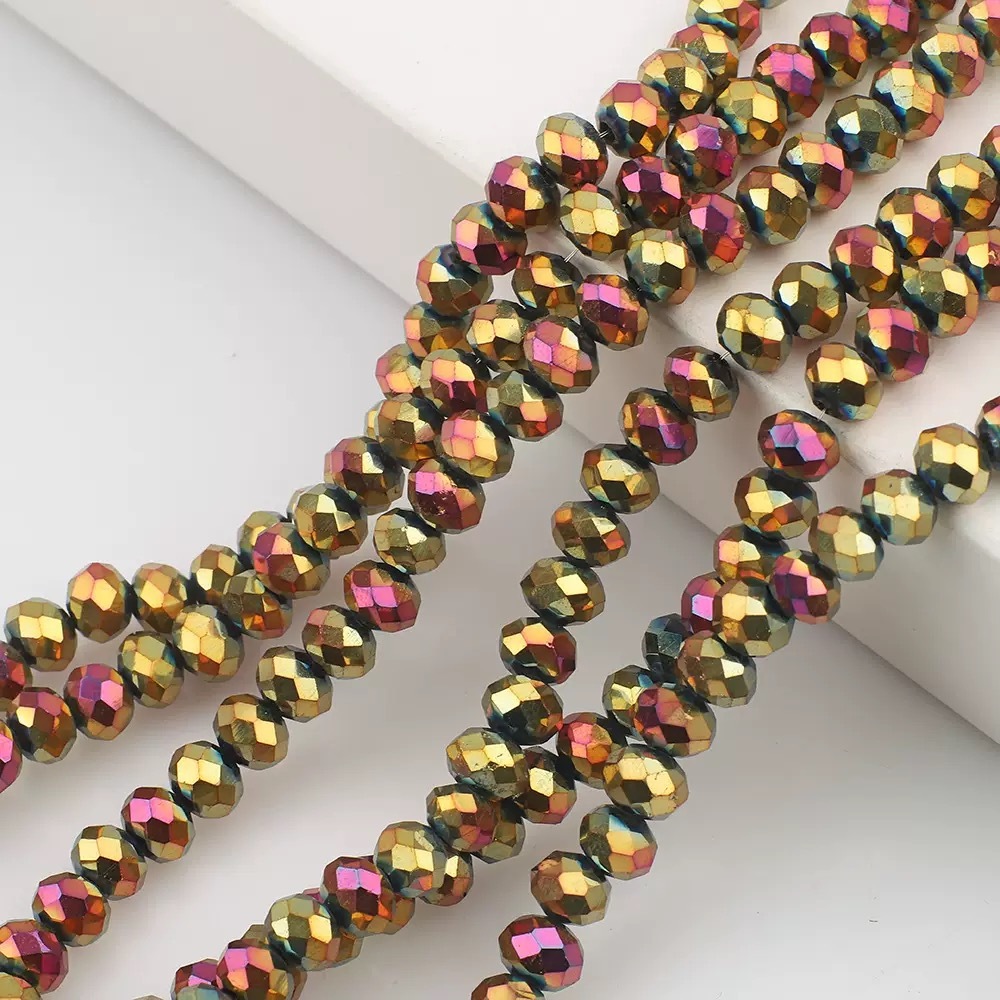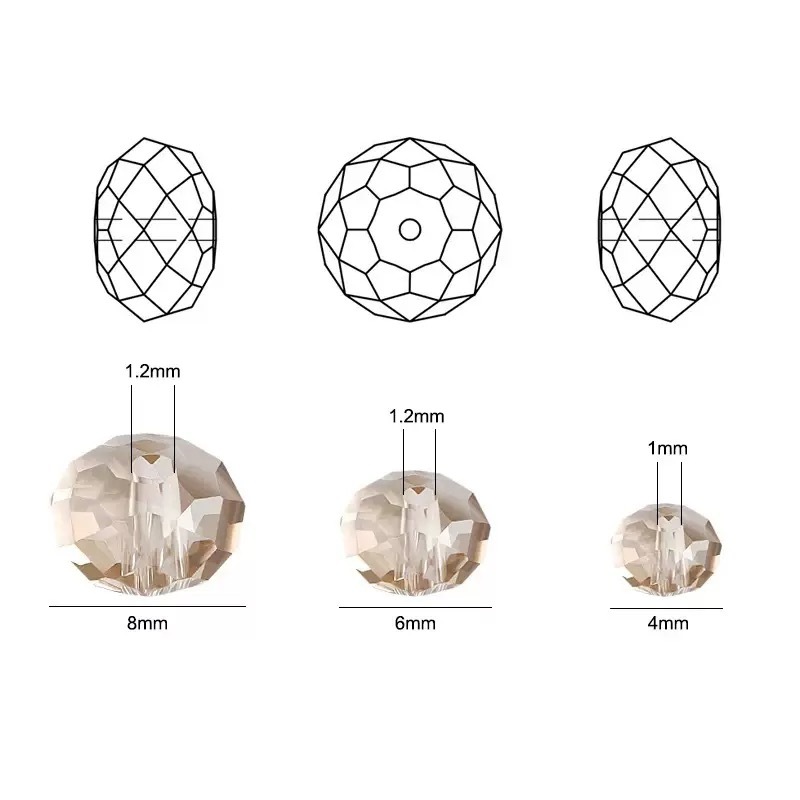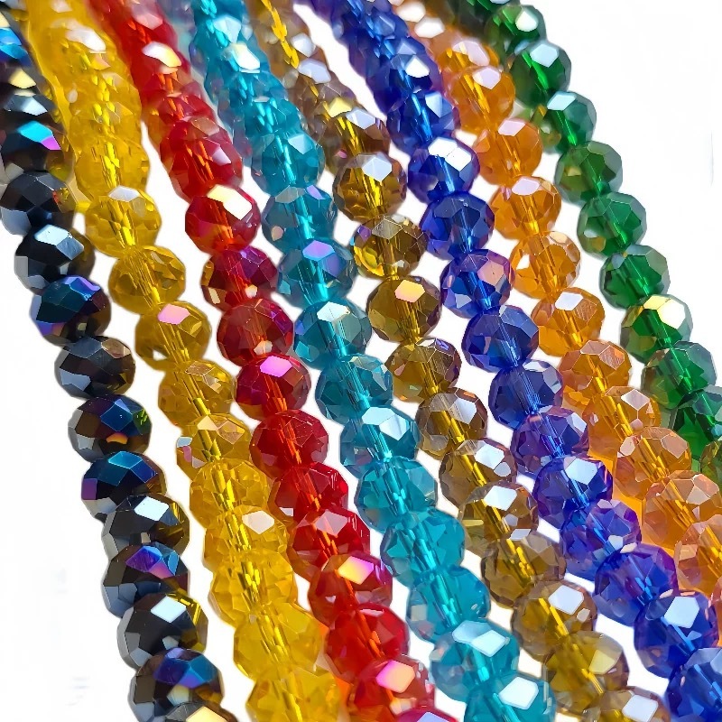 Fio de Cristal 10mm Flat Facetado Vidro 63 a 67 Cristais Contas por fio Várias Cores Premium