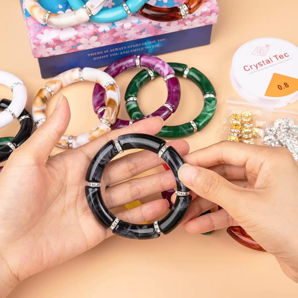 Kit com 20 peças para pulseira de Tubo Acrílico Bambu Curvo Colorido Acessório para Montar Joias DIY