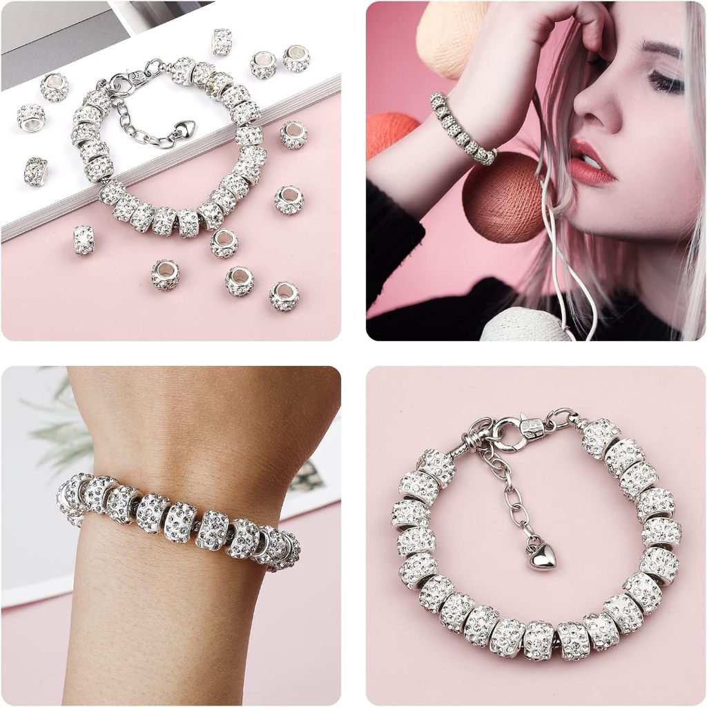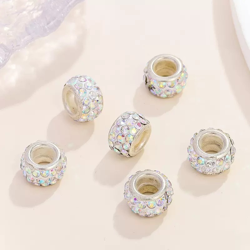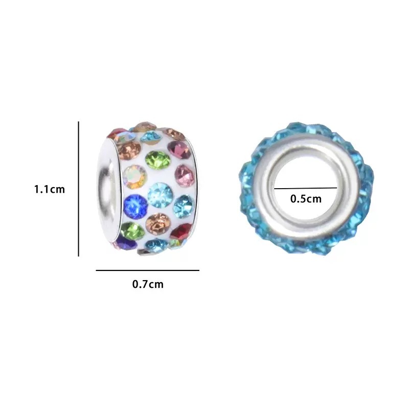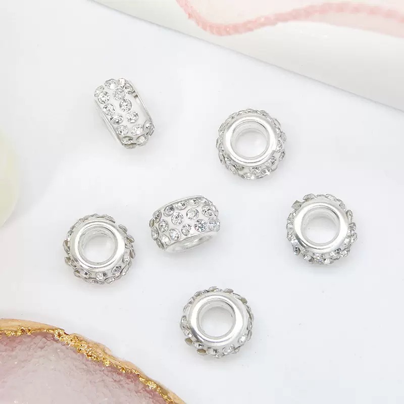 Kit 20 de Contas Espaçadoras Europeias com Strass Furos Grandes DIY Berloques Pulseiras